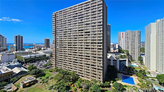 - Beautifully remodeled in 2021 1 bedroom 1 bath condominium in Kukui Plaza Diamond Head Tower with city, mountain and ocean views. Features shaker style wood cabinets in kitchen and bathroom vanity, quartz counter tops, tiled shower walls. Refinished ceilings and luxury vinyl flooring. Air conditioner, appliances and counter top microwave included. Enjoy the pool, BBQ areas or walk through the beautiful landscaped gardens. Located at the top of Downtown Honolulu near shops and eateries. Monthly public parking in the complex.