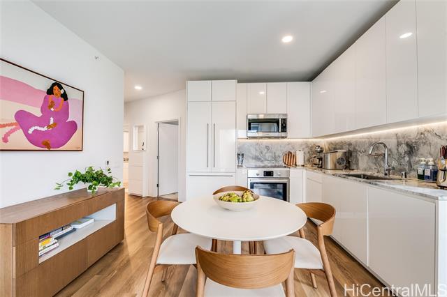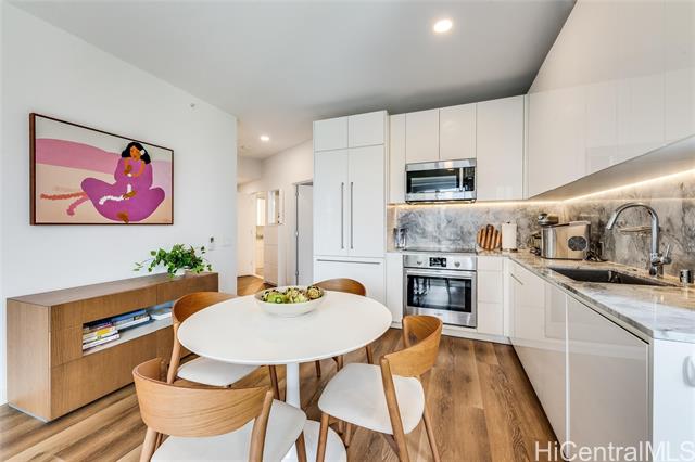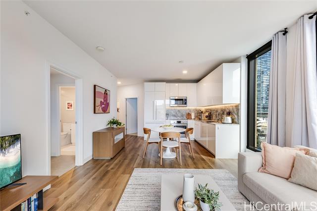 - Experience luxury living at 'A'ali'i in the heart of Ward Village in Kaka'ako! This stunning front-corner 2-bedroom, 2-bath condo, designed by renowned Solomon Cordwell Buenz and Rottet Studio, offers a modern, sophisticated lifestyle in one of Honolulu’s most coveted communities. Fully furnished with sleek, space-saving design, this residence maximizes comfort and style. A rare find, this corner end unit is the most desirable 2-bedroom floorpan in the building, featuring in-unit washer/dryer, a walk-in closet in the primary suite, 1 parking stall with storage lockers above and an additional storage room in the building. Floor-to-ceiling windows flood the space with natural light, while high-end finishes and premium appliances enhance the contemporary appeal. Enjoy Penthouse-level amenities on Lanai 42, a full-floor oasis for relaxing and socializing, provide gorgeous 360° views of land and sea and a state-of-the-art fitness center and yoga studio. Additional resort-style amenities include private lounges, pool, spa, playground, dog park and BBQ cabanas. Live steps from world-class dining, shopping, movies and the vibrant urban lifestyle of award-winning Ward Village.