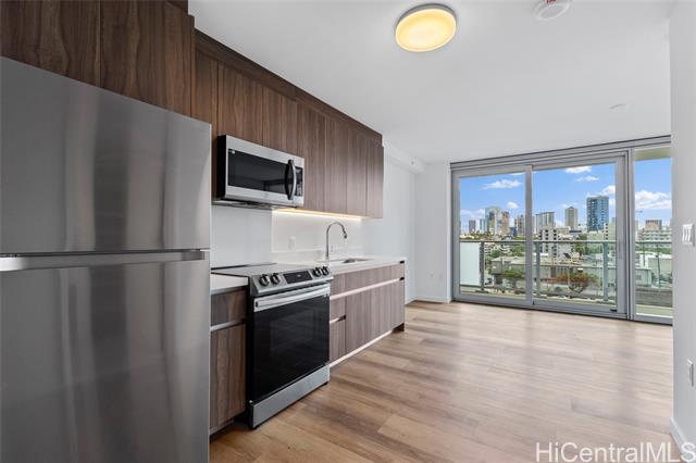 - Welcome to The Park on Keeaumoku, a brand-new, modern community offering the best of urban living. This 391 sq ft studio features a private lanai for seamless indoor-outdoor enjoyment. The open layout is enhanced by floor-to-ceiling windows, luxury vinyl plank flooring, and quartz countertops. Enjoy resort-style amenities, including an infinity pool, fitness center, and media room. With a "Walker's and Biker's Paradise" score, the location is incredibly convenient. You are just moments away from Ala Moana Center, Walmart, and Sam's Club, with easy access to dining, shopping, and entertainment. This is city living at its finest. One or more photos have been enhanced.