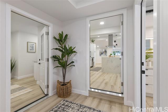 - Tastefully renovated and move-in ready, this spacious 5-bedroom, 4-bath Enchanted Lake home offers modern comfort and versatile living options. Perfect for multi-generational families or extended guests, the flexible layout includes a private 2-bedroom, 2-bath area with its own kitchen and living space. Three entrances and thoughtfully designed private areas provide convenience, comfort, and privacy for all. Recent upgrades include new laminate flooring, quartz countertops in kitchen and baths, walk-in tiled showers, and a bright open kitchen with sliding glass doors opening to a large backyard—ideal for entertaining or relaxing. Mitsubishi split AC systems provide quiet, energy-efficient comfort throughout. Don’t miss this rare opportunity to own a highly adaptable, move-in-ready home with quality finishes and excellent indoor-outdoor flow in a desirable neighborhood. Bath count may differ from tax records; buyer to verify.