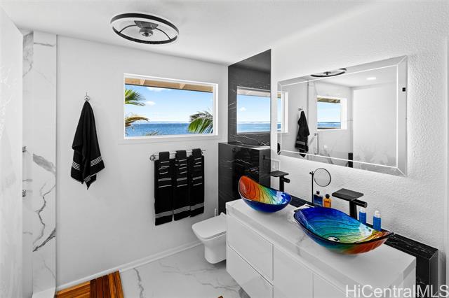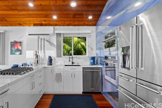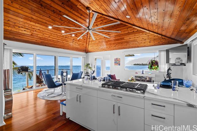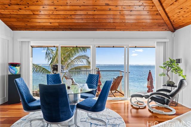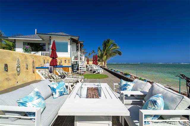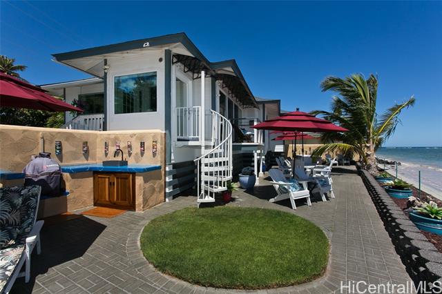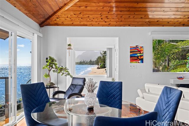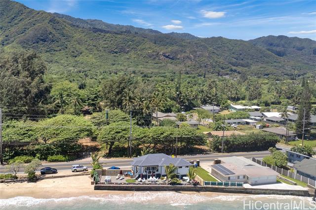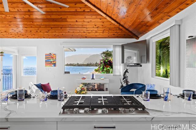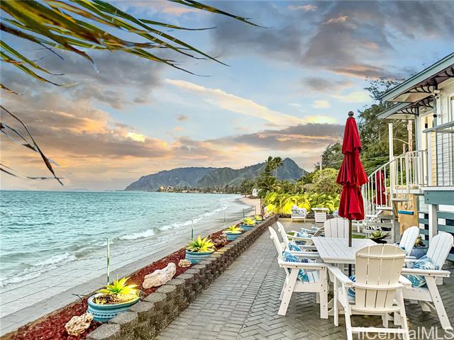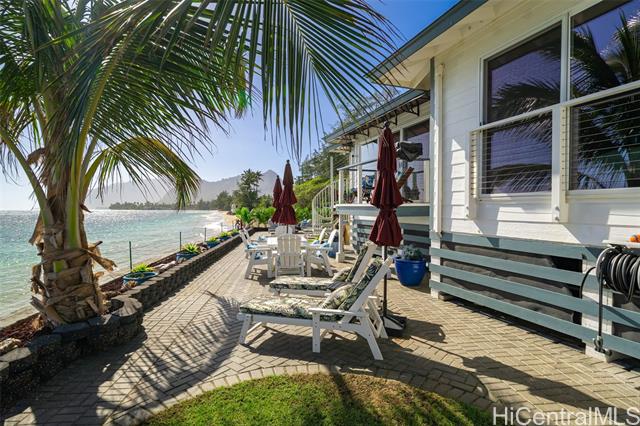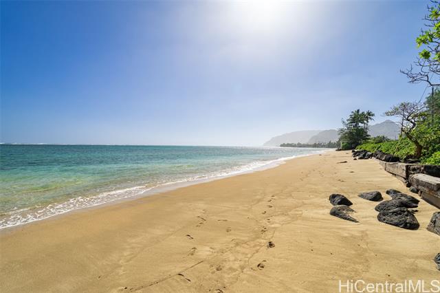 - A Rare Oceanfront Gem in Punaluu Across from Sacred Falls, this immaculate beachfront home offers something rare—direct access to a serene sandy shoreline that feels like your very own private beach. Unmatched along this coastline, the setting blends tranquility, privacy, and a front-row seat to the sea. Every detail has been thoughtfully customized. This turn-key home features a resort-inspired backyard with outdoor kitchen and new furnishings, a spa-like primary suite with custom glass sinks, a soaking tub, and a walk-in shower overlooking the ocean. The kitchen showcases striking Azul Macaubas quartzite, inset appliances, and an open-concept design accented by Brazilian cherry floors, open-beam ceilings, and custom stone finishes. Step outside to 180° views stretching from mauka to makai. Bordering a white sandy beach, enjoy unobstructed vistas of turquoise waters, sandy coastline, and the majestic Ko?olau Mountains. Swim, snorkel, kayak, paddleboard, or simply stroll the sand. As the sun sets, the ocean paints the sky in colors only Punaluu can offer. This is more than a home—it’s island luxury where every day feels like a vacation.Bedrooms do not match tax records.
