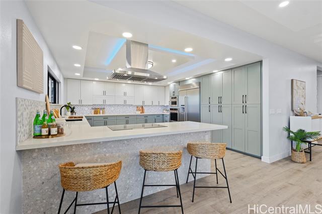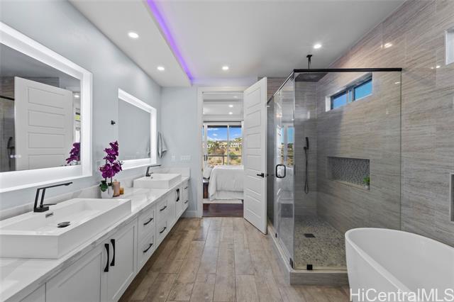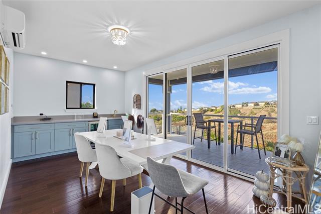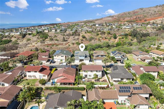- Enjoy fresh breezes, stunning valley views, and peaceful living in this beautiful Makakilo home. Built brand new from the ground up in 2022, this spacious 6-bedroom, 6-bathroom residence offers modern design, comfort, and flexibility for every lifestyle. With three full suites, including a downstairs unit with its own entrance, bathroom, and walk-in closet, the home is ideal for guests or rental opportunities.Step inside and enjoy: Open-concept living, dining, and kitchen spaces — perfect for entertaining. A bright kitchen featuring quartz countertops throughout and a high-end forced induction stove. Tile flooring on the first floor and real wood flooring upstairs. Soaring 9-foot ceilings that create a light, airy atmosphere A beautiful second-floor balcony overlooking Makakilo Valley — with cool breezes and even the occasional sound of cows grazing nearby. The location offers the best of both worlds: tucked away in a very safe, quiet neighborhood near Palehua Camp and the Kumulani gated community, yet just minutes from Makakilo Community Park and local schools. This home blends modern elegance with the serene char of Makakilo living — all in a setting that feels like a retreat.