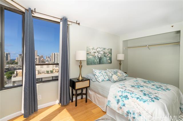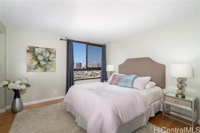 - Spacious open floor plan 2-bed,2 bath, breezy corner unit 2 assigned (tandem) FEE SIMPLE. Ready to move in!!! Diamond head, Waikiki, city, and some ocean views. Renovated/Upgraded 2019: Floor, Kitchen, Bathrooms, NO POPCORN CEILING. Washer and dryer in the unit. Newer Glass top stove, Dish Washer, refrigerator. Newly Re-Pipe the whole building. Kings Gate equipped with fire sprinkler system. Onsite resident manager. Convenient location! Close to University of Hawaii/ Moiliili/ Ala Moana/ Waikiki area. Maintenance fee: $1033.14 & Re-Pipe Loan assessment is $205.15.