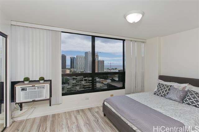 - Enjoy city, ocean, and coastline views from your unit! This spacious 1bed/1bath unit features laminated wooden flooring throughout the unit, popcorn ceiling is removed for a clean and bright look, adequate storage space, and the convenience of an in-unit washer & dryer. Additionally, the unit offers a covered parking space in a gated parking structure and a storage locker, and more...Residents enjoy resort-style amenities such as a salt-water pool, jacuzzi, sauna, fitness center, and a BBQ cabana in the beautifully landscaped deck area. Royal Capitol Plaza also has a porte cochere entry for easy pick-up & drop-off, a car wash area, and an on-site mini mart for your convenience. Appreciate a building that is 100% hurricane insured, with installed fire sprinklers, lots of guest parking stalls, and 24-hour security for added peace of mind. Also, it offers very reasonable maintenance fees, which are hard to find in the Kakaako area. Perfectly situated near Kakaako, Downtown, and Ala Moana, this home is adjacent to Honolulu's top medical, governmental, & financial districts. *** Sunday Open House 10/19/2025 2-5 PM***