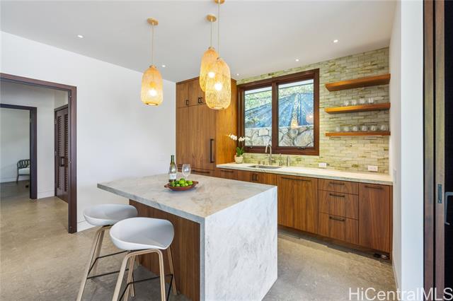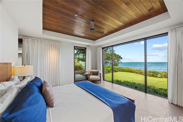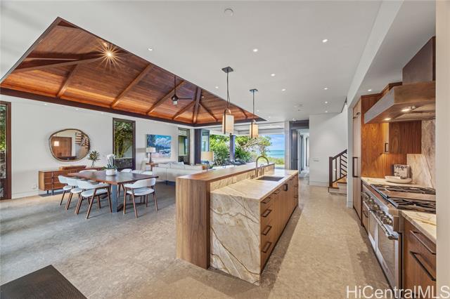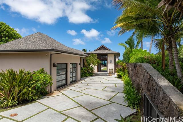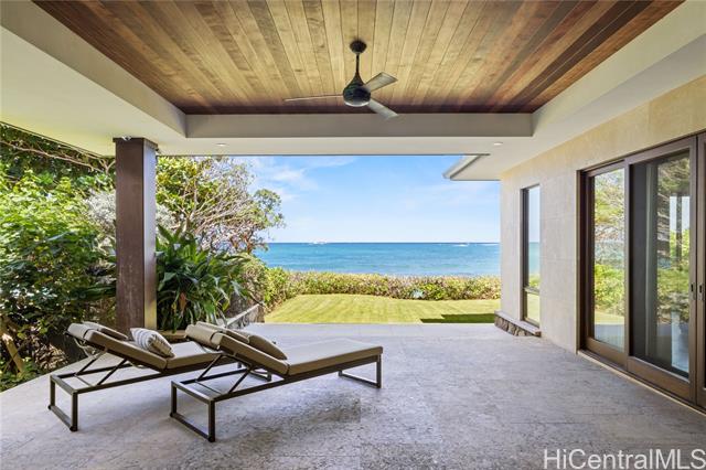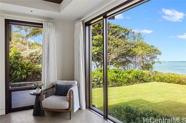- Masterfully designed beachfront residence in Malaekahana by architect Peter Vincent and Mokulua Builders. This exceptional home blends cutting-edge green design with dramatic ocean views and seamless indoor-outdoor living. A thoughtfully planned oceanfront lot features multiple pavilion-style structures that maximize views, natural light, and ventilation. The grand outdoor pavilion offers a covered lanai with full bath, kitchenette, travertine flooring, and mahogany doors opening to a lush courtyard. A striking 45-foot lap pool sits between the pavilion and main residence, creating a seamless water axis and direct connection to the ocean. Expansive lanais and large glazed walls bring in ocean breezes and continuous coastal views. Refined finishes include natural stone floors, limestone feature walls, custom woodwork, teak stair treads, mahogany railings, and custom doors and windows. A rare opportunity to own a world-class oceanfront estate on Hawai‘i’s North Shore—pairing modern luxury with thoughtful sustainability in one of the island’s most desirable settings.