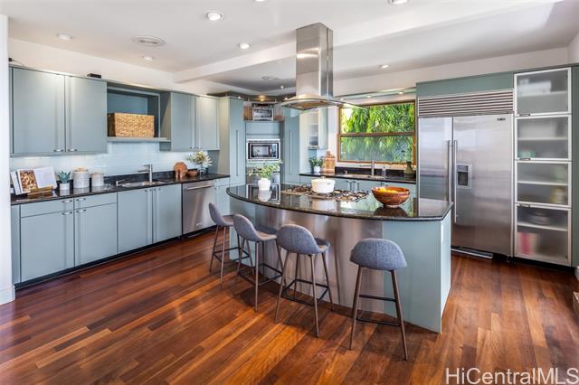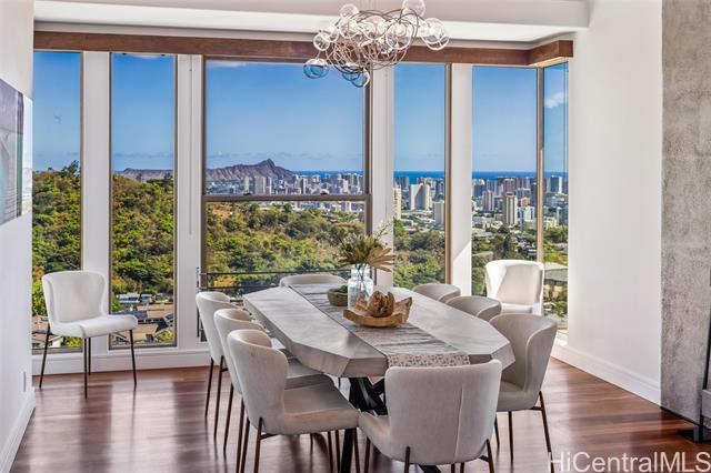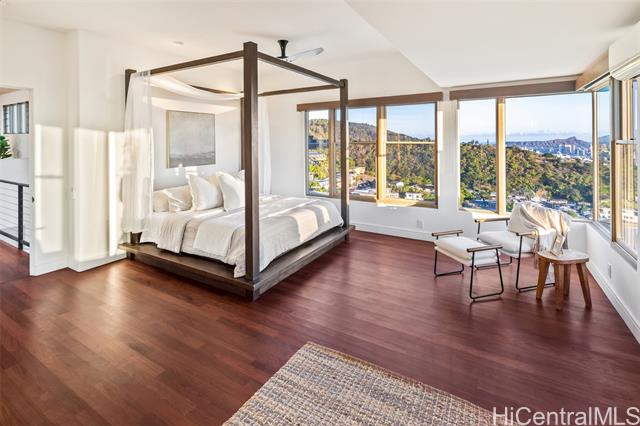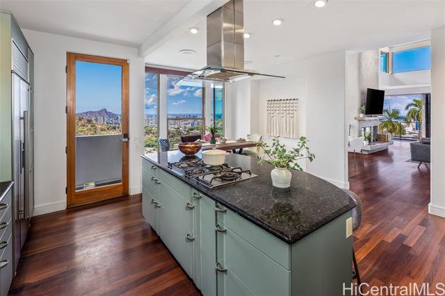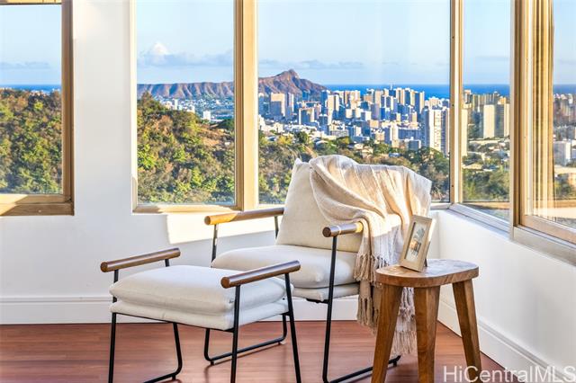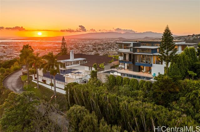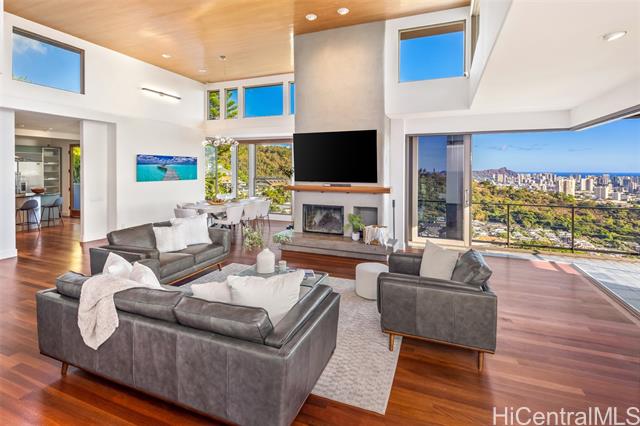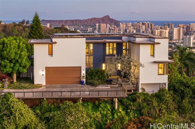 - Contemporary Elegance! Welcome to this extraordinarily designed custom home by architect, Jim Schmit. The floor plan is masterfully designed toward the focal points of spectacular views from Diamond Head to Pearl Harbor to the Ko'olau Mountains. Monumental ten feet tall Bonded Bronze entry doors greet you and lead to the grand two-story living room. Stepping into the living room is an unexpected "WOW" experience at the sight of breathtaking, unobstructed views. Australian Chocolate Heart Brushbox hardwood floors, double cantilevered living room walls, an ASID Award winning kitchen and clean, elegant architectural lines create a timeless design for this home. You'll enjoy waking up to amazing views of Diamond Head, Waikiki, Punchbowl and vistas out to the ocean from your primary bedroom suite. The lower-level recreation room with tumbled Travertine floors leads out to the wonderful lanai, spa and lap size pool complete with more gorgeous views. Discretely set back from the street, this extraordinary home offers privacy and a great location with its proximity to Downtown and major highways. You'll love coming home to enjoy living in this remarkable home!