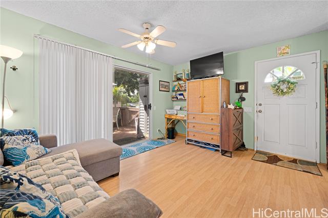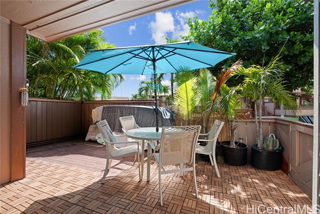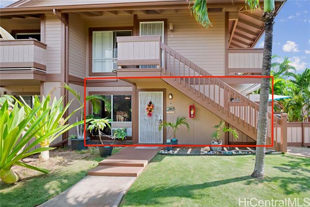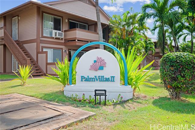 - Welcome to Palm Villas in Ewa Beach! This desirable DOWNSTAIRS corner, 2-bdrm, 1.5-bath unit is a great place to call home. Enjoy a bright living area, a functional kitchen, and a private lanai where you can relax and unwind. The lanai has a shed, patio furniture, and plants that will stay. Both bedrooms are comfortable with good closet space, and the half bath adds extra convenience. The unit is located on the cool and breezy side of the building, with window tinting to keep it even cooler. Building 7 is in a desirable part of the complex, away from traffic noise but not too far from Kolowaka Drive, where there is street parking and a bus stop. Upgrades done over the years include a remodeled kitchen, bathroom renovations, newer flooring, newer AC units and most recently, all new screens on the windows and a brand new ceiling fan in the bedroom. This unit includes two assigned parking stalls (one covered and one uncovered), and the complex has ample guest parking. Community pool, BBQ area, and recreation space on the grounds. Palm Villas is a pet-friendly complex and conveniently located near shopping, dining, schools, parks, and beaches. Great for first time buyers or downsizing.