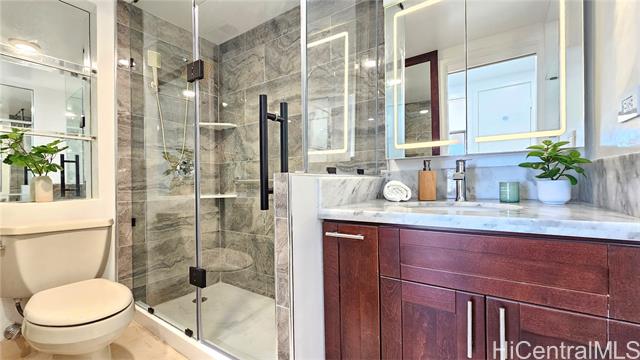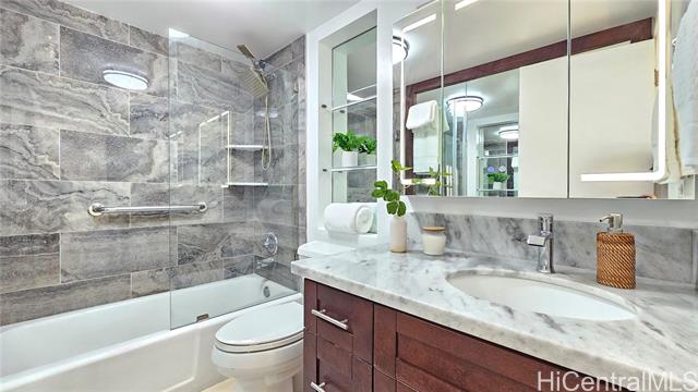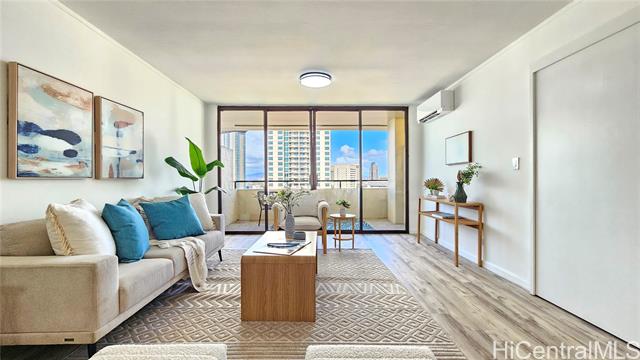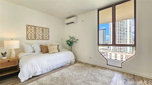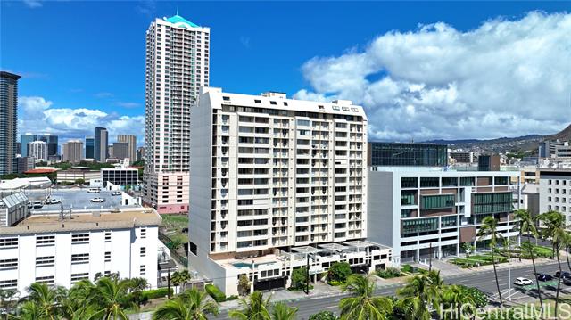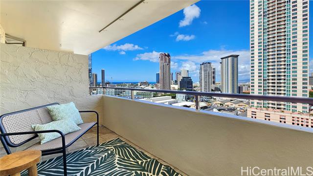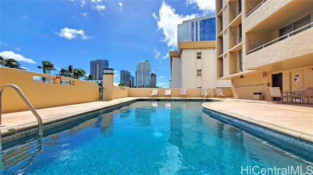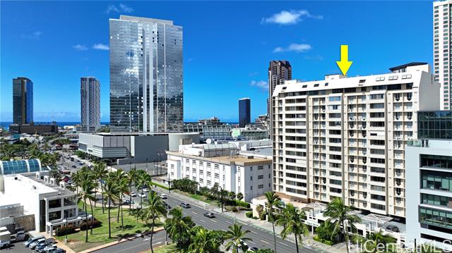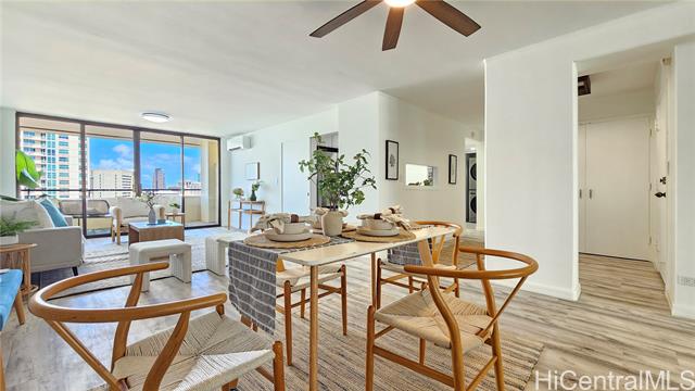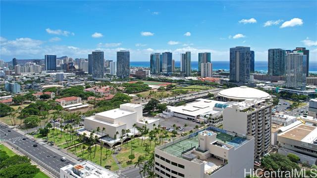 - Experience penthouse living in this single-level unit offering sweeping mountain, city, and partial ocean views. Thoughtfully updated, the home features a new refrigerator, microwave, stove, washer, dryer, and brand-new split air conditioning in every room. Two beautifully renovated bathrooms include both a shower and a tub. Custom lighting enhances every space. Positioned on the quiet side of the building, this residence combines comfort with unbeatable convenience. Step across Ward Avenue to enjoy Blaisdell Center’s concerts, theatre, sports, and weekly farmers markets. Stroll to Thomas Square Park and the Honolulu Museum of Art or explore the growing neighborhood with exciting new restaurants and shops on the way. Just minutes from Ala Moana Shopping Center, the beach, a movie complex, and the state’s largest Whole Foods. A planned rail station nearby adds future value. Amenities include locked storage for surfboards and bikes, plus gated parking with a stall right by the lobby.
