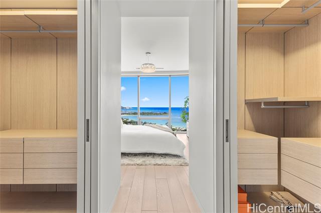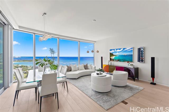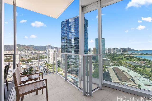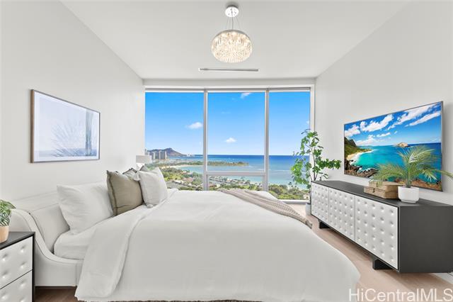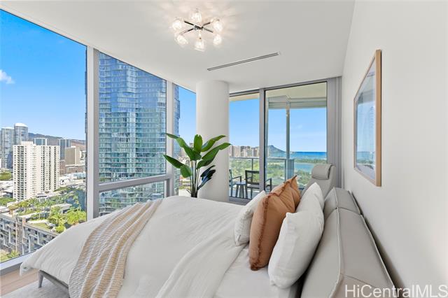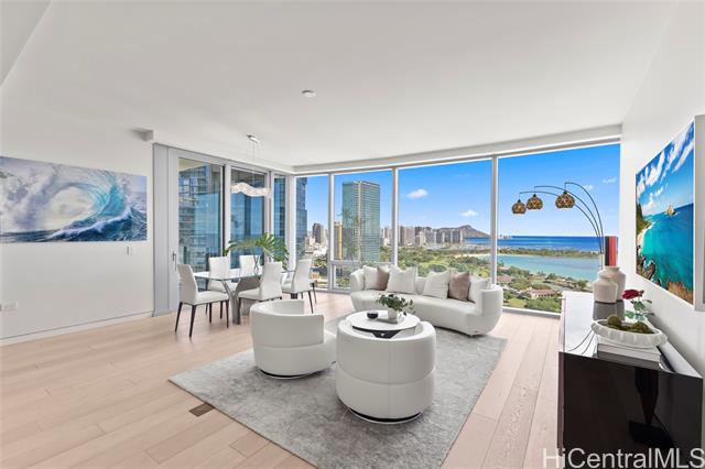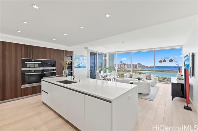 - Waiea 2006 – Four-Directional Views & Refined Island Living. Discover unparalleled luxury at Waiea, the flagship tower of Ward Village. This coveted east-facing 3-bedroom, 2.5-bath residence offers stunning four-directional views of Diamond Head, the Pacific Ocean, Marina, lush mountains, and the vibrant Honolulu skyline. Enter through a private foyer into a spacious, elegantly designed home with 9’6” ceilings, hardwood floors, and floor-to-ceiling glass that frames every breathtaking vista. The chef’s kitchen features Miele appliances, gas cooking, European cabinetry, and a wine fridge. The primary suite boasts a spa-inspired bath with a freestanding tub and onyx finishes. Waiea’s world-class amenities include an infinity-edge pool, cabanas, BBQ pavilions, fitness center, golf simulator, theater, guest suites, and the exclusive owner’s Sunset Lounge. Concierge services elevate the experience. Ideally located moments from Ala Moana Beach Park, Whole Foods, and Honolulu’s best dining and shopping at Ala Moana Center, Waiea 2006 offers an extraordinary blend of sophistication, comfort, and island lifestyle.