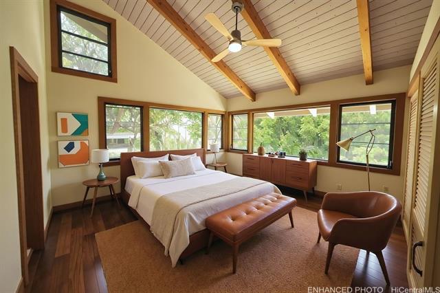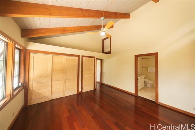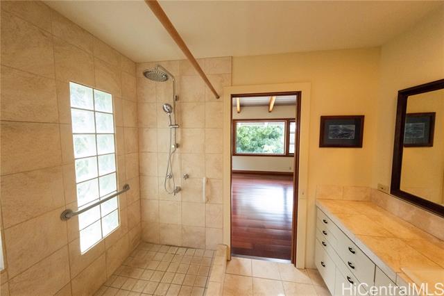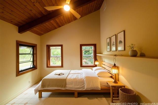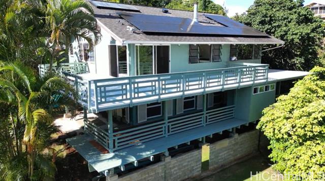 - A secluded entrance ensures privacy for this country home, surrounded by mature fruit trees that create a lush, natural and peaceful setting. This home offers an incredible blend of architectural design, privacy, & serene surroundings. This 3bd, 3bath, w/2 full bath on main level. A true labor of love! Custom details & finishes such as a mantle w/ wood burning fireplace and unique Japanese inspired bth. The downstairs could be a large in-law/rental unit with its own entrance. Floor plan includes expansive living areas that flow seamlessly, great for relaxed island living. The open-concept layout, vaulted ceilings, & large windows, brings the outdoors in. Enjoy the mt views from the partially & covered decks on both levels, or play a round of basketball outside. Room to add your own personal touches to call this place your own home. 24 PV panels, new solar thermal hot water heater. 10 mins from the most famous surf /beaches in the world. Enjoy an abundance of fruit trees: lychee, avocado, tangerine & orange, banana, and breadfruit trees! Sold As Is. TMK differs than MLS. Buyer to do due diligence.