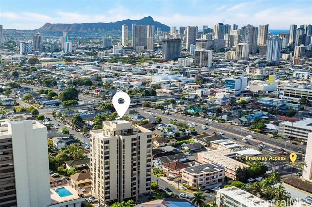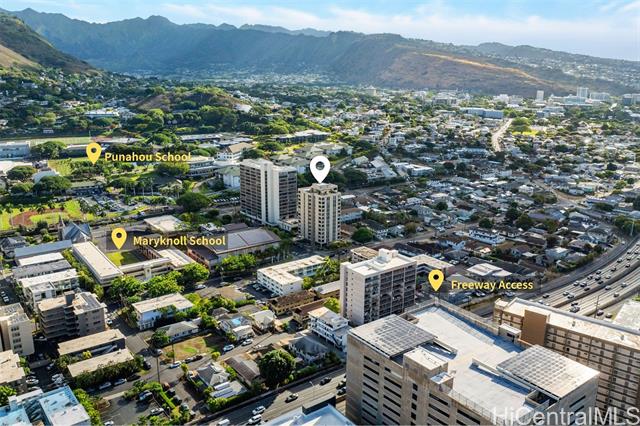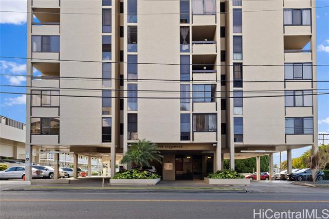 - The Alexander sits at the corner of Dole and Alexander Streets - just minutes from Maryknoll, Punahou, UH Manoa, and Kapiolani Hospital, with quick freeway access to Downtown and beyond. This rarely available corner end-unit provides added privacy and abundant natural light throughout. Enjoy sweeping views of Diamond Head and the city skyline from your home. Parking is conveniently located right next to the building entrance, and the unbeatable central location makes commuting in every direction simple and convenient.