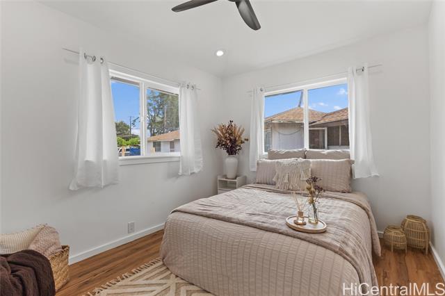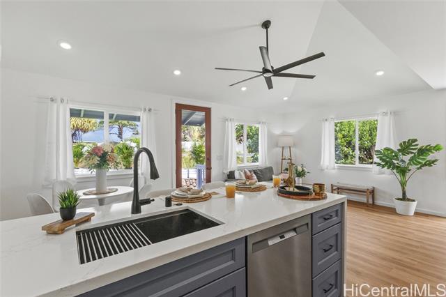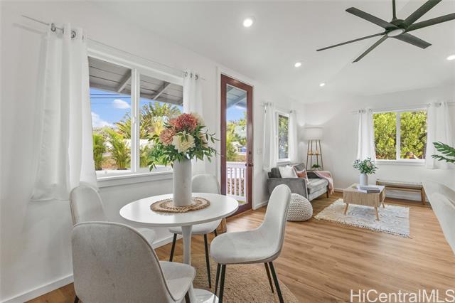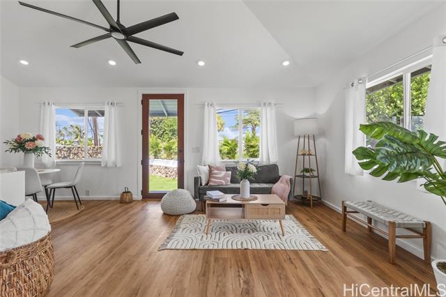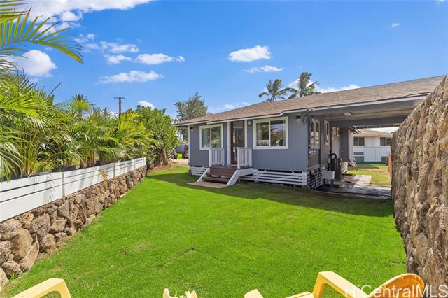 - Nestled in the heart of Laie on Oahu's world-famous North Shore, this inviting three-bedroom, two-bathroom home offers the perfect balance of simple comfort and island living. Surrounded by lush tropical landscapes and just minutes from pristine sandy beaches, the property provides both relaxation and convenience. Newly renovated, you will find a bright, open concept living space with cooling trade winds and abundant natural light from large windows located throughout the home. Recess lighting, split AC, a modern kitchen that flows seamlessly into the living area, are just a few of this quaint property's highlights. The primary bedroom with private bath, along with two additional bedrooms and a second full bathroom, provides extra space for family or guests. Located near Brigham Young University-Hawaii, the Polynesian Cultural Center, and just a short drive to the surf towns of Sunset and Haliewa, this home places you in one of the most desirable communities on island. Whether you are looking for a family residence, a vacation retreat or investment property, this Laie gem offers an authentic North Shore experience with comfort and charm.