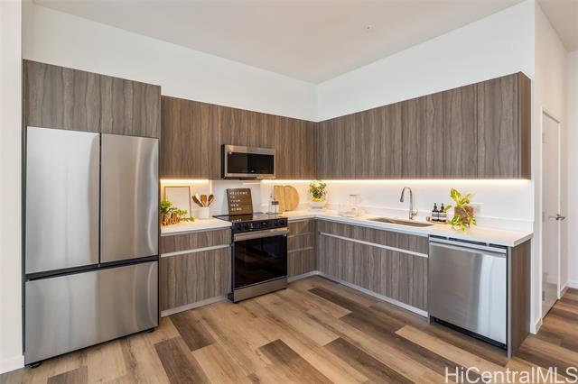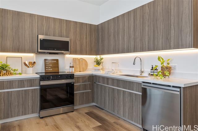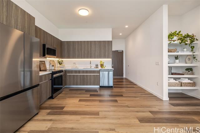- Spectacular high ceilings define this top-floor, penthouse-level residence with views not only of Diamond Head and the ocean, but all the way over Kahala to Maunalua Bay! The 07 is the largest floor plan of the three 1bds on the 44th floor, and features a stunning lanai. The wide bedroom layout takes full advantage of the view, with tall, floor-ceiling glass. Upgraded with LVT flooring in the bedroom and automatic shades, this home is ready to move into and has never been occupied. The parking stall is amazing, on the lowest gated level diagonally across from the entrance to the tower elevators. The Park on Ke‘eaumoku is Midtown Ala Moana’s newest condominium, known for its spacious amenity area featuring a huge infinity pool and hot tub, huge party rooms, lots of private BBQ cabanas, gym, saunas, theater, and more. Don’t miss this special penthouse!