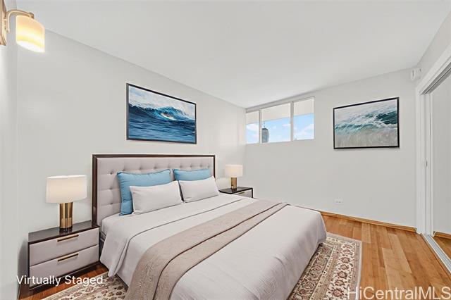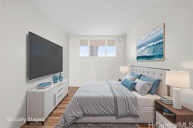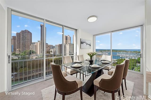 - Corner residence in the Ala Moana area with sweeping views of the ocean and city skyline. This 2-bedroom, 1-bath home offers a bright and functional layout with windows on multiple sides to capture natural light and breezes. The unit has been partially renovated, providing updated finishes while allowing room for your personal touches. Positioned to take advantage of the surrounding scenery, the living spaces open to panoramic vistas that can be enjoyed day or evening. The central location places you near Ala Moana Center, beaches, dining, and entertainment, with easy access to Waikiki and Kaka?ako. A rare opportunity to own a corner unit with ocean and city views in one of Honolulu’s most convenient neighborhoods!