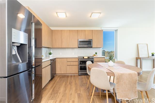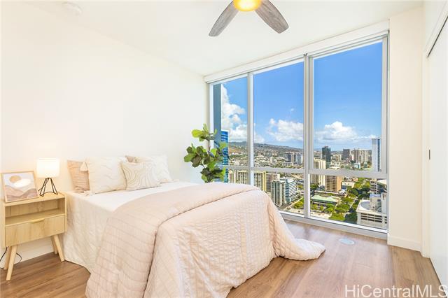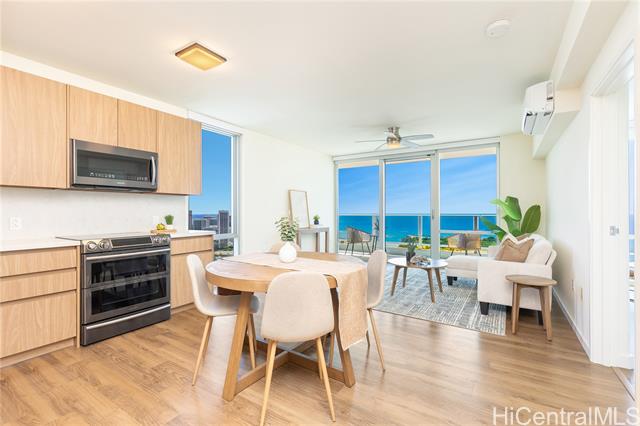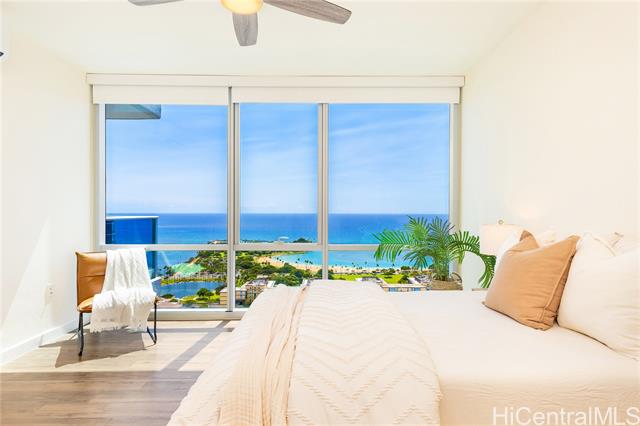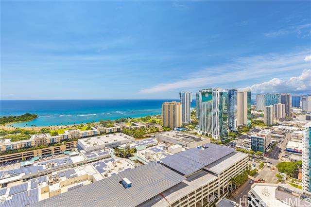 - Spectacular Unobstructed Panoramic Ocean Views from this Rarely Available and Highly Sought-after High Floor 2 Bdrm/2 Bath/ 2 Parking Corner Unit w/ a Spacious Balcony. This Unit Boosts tons of Natural Light and offers Trade Wind cross breezes all year round while enjoying Breathtaking Sunrise, Diamond Head, Ocean and Sunset Views out of floor to ceiling windows. This Condo comes w/ Upgraded bedroom flooring, added closet space, and feature High-Tech top of the line Samsung Stainless Steel Appliances, programmable high-efficiency split AC systems, and laundry room with a Full-Size Washer and Dryer. This building is conveniently located near Ala Moana Beach Park, Ala Moana Shopping Center, Ward Village, great supermarkets, dining and entertainment options. Building Amenities feature a Resort Style deck w/ a heated infinity pool, children's pool, jacuzzi, BBQ pavilions, fitness center, playground and social room, dog park, 24-hour security and reception desk, bike and surfboard storage and lots of guest parking. Low Maintenance Fees. If you are considering a move, investment or vacation home... This is a Must See!