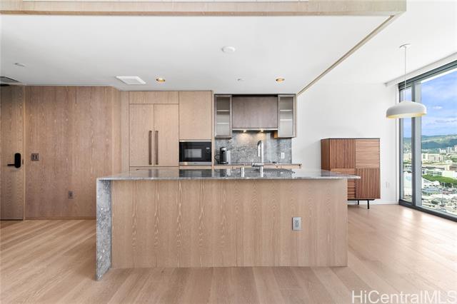 - Built in 2021, this modern corner unit has sweeping views of the city, mountain and ocean. Two bedrooms, 2 bath, 1 parking with not one but two lanais. Motorized shades in all the rooms. Toto washlet in primary bedroom. Electric vehicle charger installed in parking spot. Enjoy in the building amenities with swimming pool, jacuzzis, sauna, exercise room, bbq areas, entertainment rooms and more. Great location close to Whole Foods, Ala Moana shopping center, movie theater, dining and entertainment.