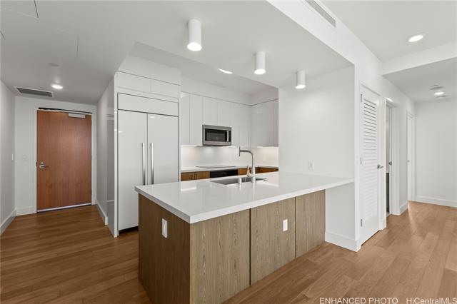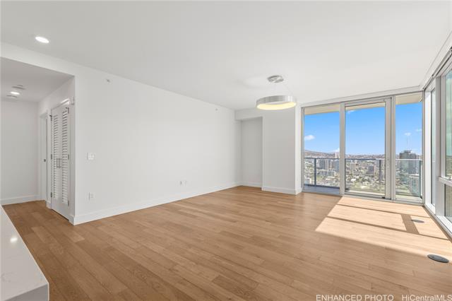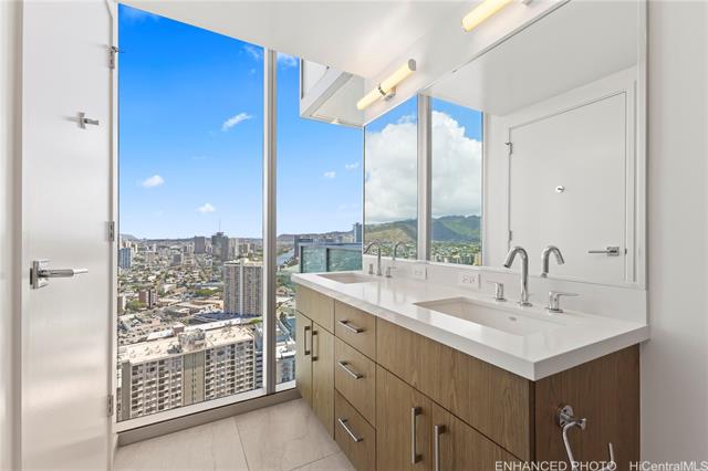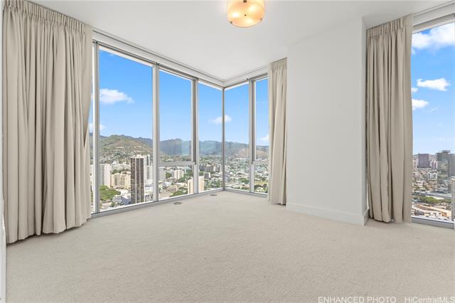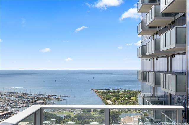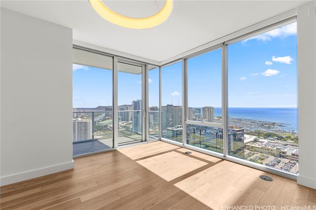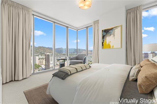 - Experience modern urban living in the heart of Honolulu with this premium 2-bedroom, 2-bathroom corner unit at Azure Ala Moana. Situated on a desirable high floor with soaring 9-foot ceilings, this home offers both comfort and style. The kitchen features top-of-the-line appliances, including a Sub-Zero refrigerator, Bosch microwave, Wolf cooktop and oven, and Bosch dishwasher. The living room has roller shades, while all bedrooms are equipped with both roller shades and blackout curtains. A storage locker is conveniently located in your assigned parking stall, along with two side-by-side reserved covered parking spaces. Enjoy being just minutes from Ala Moana Center, Ala Moana Beach Park, Target, Sam’s Club, and a variety of dining options. Azure Ala Moana provides resort-style amenities such as a pool and jacuzzi, BBQ pavilions, movie theater, fitness center, bicycle and surfboard storage, guest suites, and high-speed Wi-Fi in amenity areas. The building also offers secured entry and 24-hour front desk service for added convenience and peace of mind. Discover the perfect balance of convenience, comfort, and luxury at Azure Ala Moana.