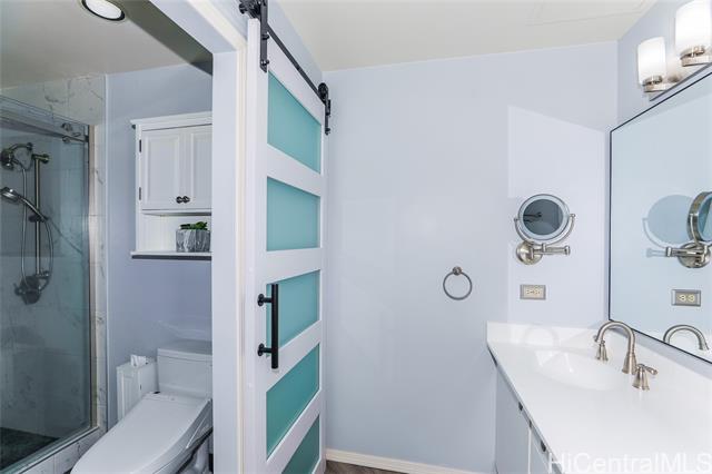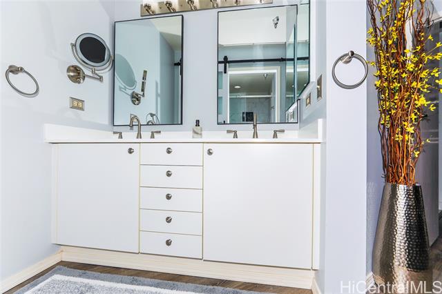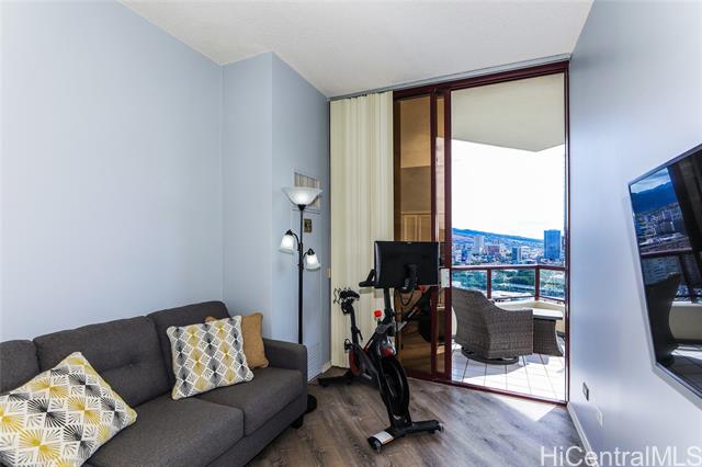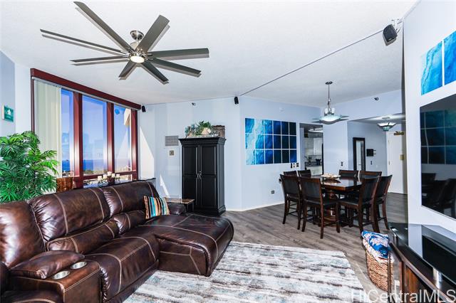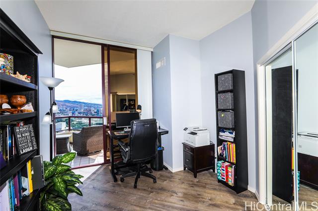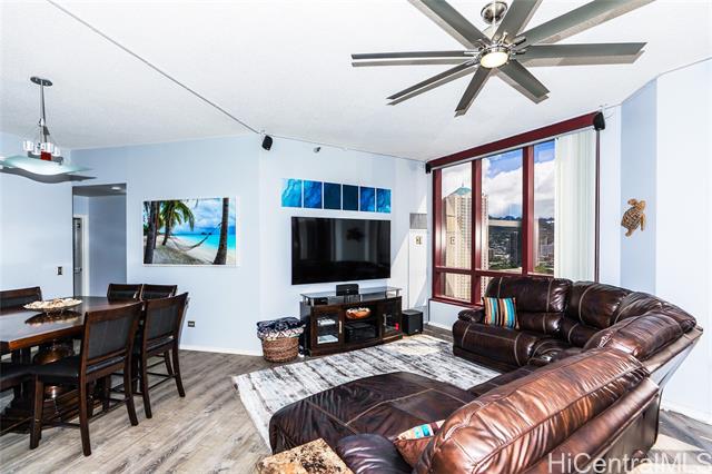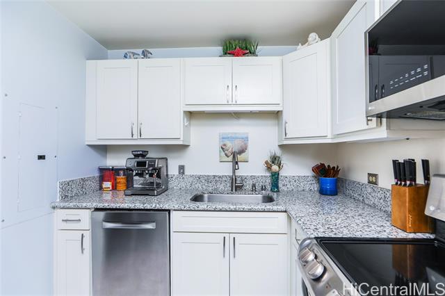 - This thoughtfully designed three-bedroom residence blends comfort, style, and convenience. The extra-large, single-bay parking stall is a rare bonus, adding to the home’s everyday ease. Step inside to a bright, open living space where soaring ceilings create an airy sense of sophistication, complemented by luxury vinyl plank flooring that flows seamlessly throughout. Recent upgrades elevate this home’s appeal, including all-new kitchen appliances installed in 2022—with a new refrigerator added in 2025—plus a full-size washer and dryer (2022). The newly remodeled primary bathroom (2025) features premium finishes and a TOTO bidet toilet, offering a spa-like retreat. Additional enhancements include surround sound wiring and a custom closet system completed in 2022. The sought-after east-facing “01” unit welcomes refreshing island breezes and showcases serene ocean views—a daily reminder of Honolulu’s beauty. Residents appreciate the friendly security team and attentive staff who foster a safe, welcoming community. Just minutes from Kaka‘ako’s dining, boutique shopping, and the vibrant energy of Downtown, this home embodies island living at its finest.