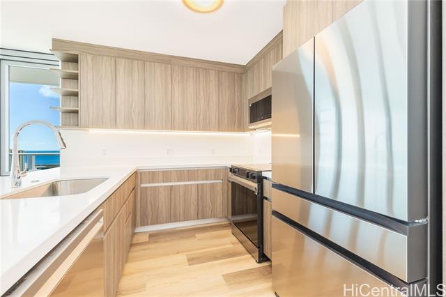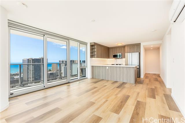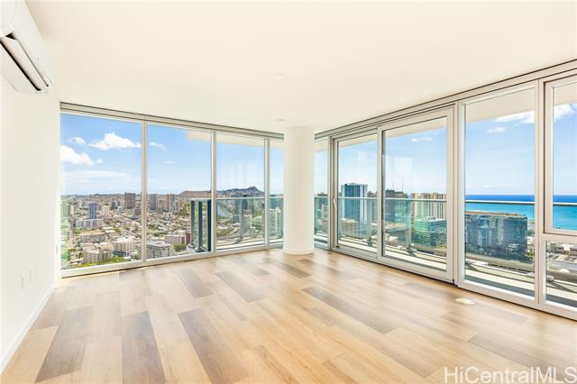 - Experience this premium corner residence in the preferred Rycroft Tower showcasing stunning ocean and Diamond Head views. Floor -to-ceiling windows flood the home with natural light, while a quiet split AC system ensures year-round comfort. The expansive layout is complemented by a warp-around private lanai, offering the perfect retreat for relaxation or entertaining. This unit also features upgraded luxury vinyl plank flooring in both bedrooms, quartz countertops, stainless steel appliances, and in in-unit washer and dryer. Residents enjoy access to an unrivaled resort-style amenity deck, featuring massive infinity pool and spa, a plethora of private BBQ pavilions, movie theater, co-working and media rooms, spectacular party rooms, and a fitness center with yoga room and sauna. Additional conveniences include secured covered parking, over 25 EV charging stations, bike storage, and 24/7 security. This pet-friendly community blends modern design with lifestyle convenience in one of Honolulu's urban neighborhoods.