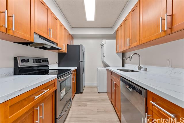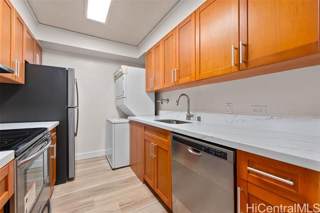 - Remodel Complete and Ready to Show Again! Convenient city living in the heart of Nuuanu! This updated 1-bedroom, 1-bath condo features a stylish kitchen with quartz countertops and stainless-steel appliances, an upgraded bathroom, new floors and paint throughout. Enjoy a premium parking stall with no neighbor and a small storage area for added convenience. Sakura is a pet-friendly high-rise with secured parking, a resident manager, and a peaceful garden setting. (Prop tax based on 2025 assessment)
