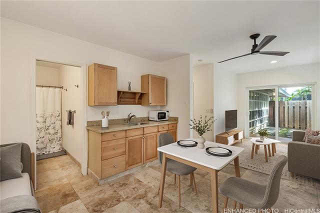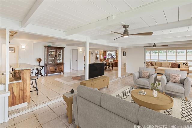 - Prestigious Kaimalino Neighborhood! This spacious 5 bedroom, 4 bathroom home offers versatile living options with 3 bedrooms and 2 bathrooms downstairs, 2 bedrooms and 1 bathroom upstairs, plus a bonus studio area perfect for in-laws, guests, or rental opportunities. The open layout is designed for comfort and flexibility, while outdoor living shines with a sparkling pool to cool off on sunny days. Enjoy energy efficiency and savings with 45 owned photovoltaic panels. A rare opportunity to own in this sought-after neighborhood with space, lifestyle, and income potential all in one! Don't miss out on this one!