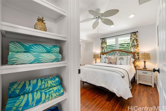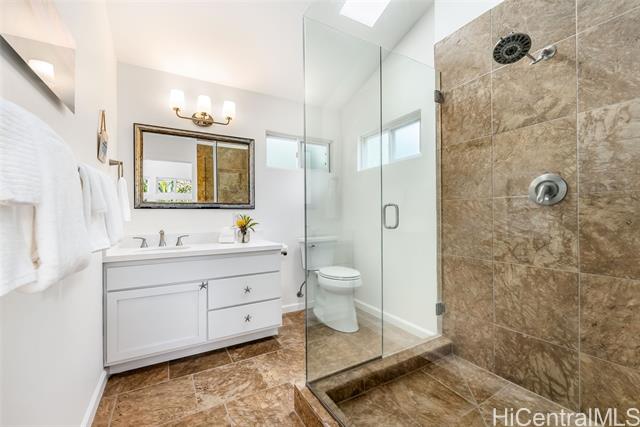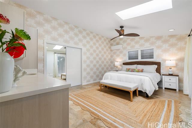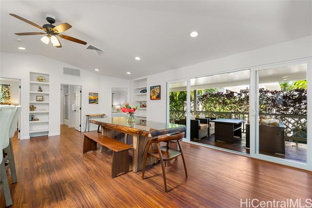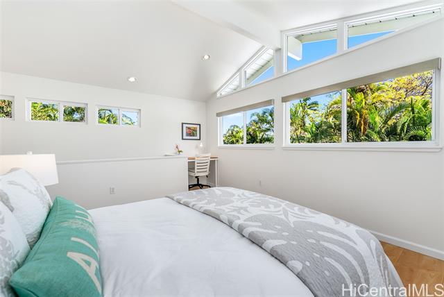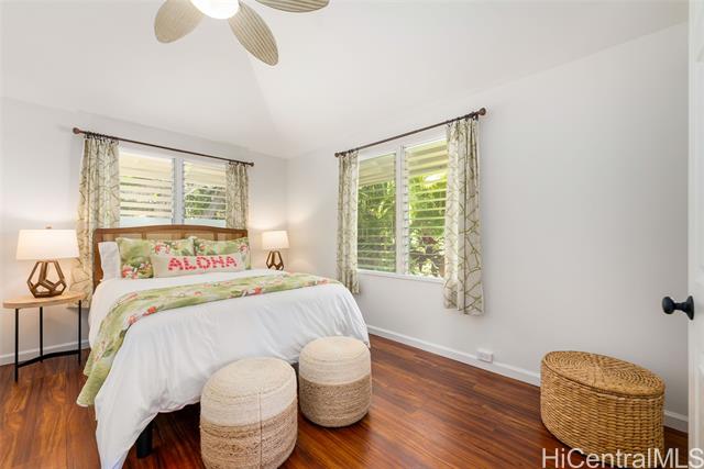 - Incredible location near the beach in Lanikai! Tucked away with plenty of privacy, a cute yard with fruit trees, and great outdoor lanai for enjoying your own slice of tropical paradise. Many upgrades and bathroom remodels were just done in 2023, including a new roof with a 50 year warranty. Luxury Taj Mahal granite countertops in kitchen with updated hardware throughout. The main home area features central AC and 2 bedrooms have split AC. Sold fully-furnished and ready to move in! The Lanikai lifestyle can be yours with sunrise at the beach, turquoise water mid-day swims, the pillbox hiking trailhead nearby, and MidPac Country Club around the corner.