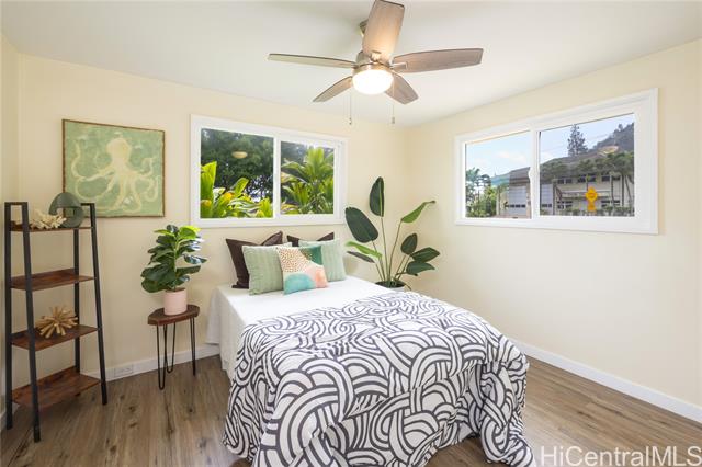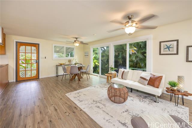 - Set along the scenic coastline of Ka‘a‘awa, this renovated, move-in ready 3-bedroom/1-bath single-family home offers a rare opportunity to enjoy a true Windward O‘ahu coastal lifestyle. Thoughtfully updated in 2024, the home features an open-concept layout with luxury vinyl plank flooring, fresh interior and exterior paint, custom lighting, and expansive glass doors that welcome in natural light, ocean breezes, and sunrise views. The modern kitchen is designed for everyday living and entertaining, highlighted by Acacia wood countertops, stainless steel appliances, and clean, contemporary finishes. Additional upgrades include a new roof with hurricane straps, double-wall construction, tinted double-pane vinyl windows, ceiling fans, and a fully updated bathroom. All bedrooms offer upgraded closet systems, with flexibility for a home office or guest space. Outdoor living is enhanced by a terraced lanai, landscaped yard, and parking for multiple vehicles on a 7,500 sq ft lot. Enjoy close proximity to beach access, scenic hikes, and Crouching Lion. Ideal as a primary residence or island retreat for those seeking a relaxed, nature-connected lifestyle on O‘ahu’s Windward side.