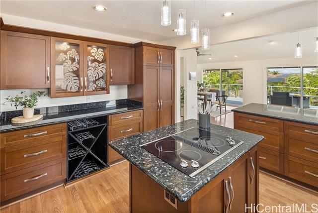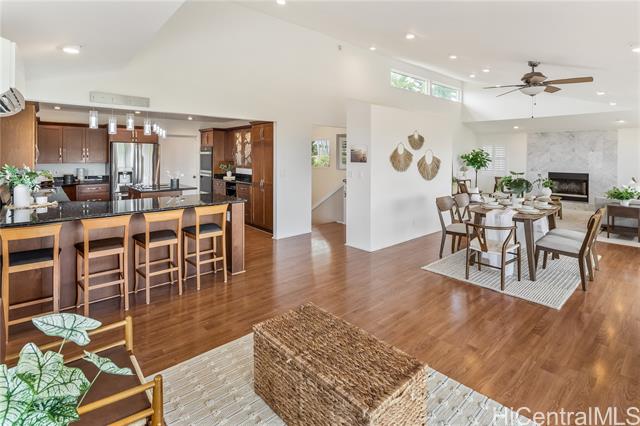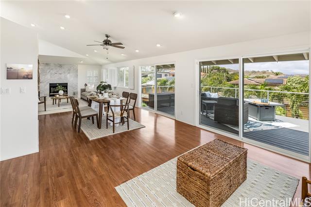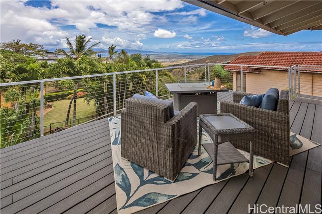 - Breathtaking panoramic views! Privately located at the end of a quiet cul-de-sac in Makakilo’s prestigious Palehua Heights, this meticulously renovated 4-bedroom, 2.5-bath executive residence captures incredible views of the Pacific Ocean, Pearl Harbor, Diamond Head, and the Honolulu skyline from expansive upper and lower lanais. Designed for effortless indoor-outdoor living, the open-concept layout features a gourmet kitchen, spacious great room, and beautifully remodeled primary bathroom accented by recessed lighting and contemporary finishes. The primary and second bedrooms open to a serene lower lanai with built-in BBQ and a professionally landscaped yard—perfect for alfresco dining relaxed island living, and entertaining guests! Energy-efficient upgrades include 26 owned LG PV panels with net metering(NEM), four split A/C units, dual-pane windows, plantation shutters, a whole-house water filtration system, and more. A two-car garage and extended driveway offer ample parking, including space for a boat. Just minutes from H-1 freeway access, five-star Four Seasons resort at Ko Olina, Costco, Ka Makana Alii mall, and Target. First time on market in 20 years!