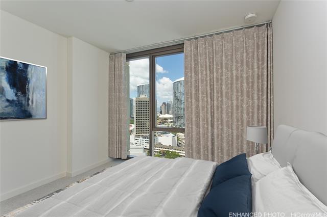 - Experience the perfect blend of modern urban living and resort-style comfort in this 18th-floor residence at Sky Ala Moana West! This 1-bedroom, 1-bath unit features an open layout with floor-to-ceiling windows, creating a bright and comfortable living space. A spacious 100 sq ft lanai offers picturesque city and mountain views, ideal for relaxing or entertaining. The unit features custom-made Italian designed curtains and comes with a large storage locker. Residents can enjoy exclusive access to the Sky Terrace, a 50,000+ sq ft amenity deck with a resort-style pool, spa, fitness center, and more. Conveniently located in Ala Moana, near world-class shopping, dining, and beaches.