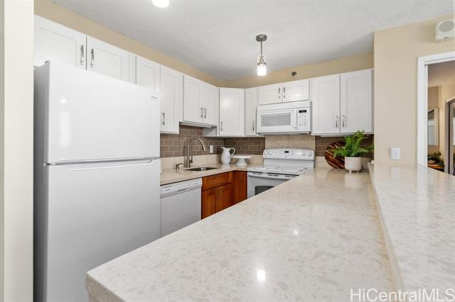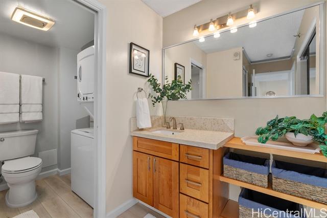 - Welcome home to this renovated & furnished high-rise gem in the highly sought-after Pearl Regency building! Perched on the 22nd floor, this bright and airy condo offers panoramic views of Pearl Harbor, a glimpse of Diamond Head in the distance along with gorgeous sunrises & sunsets lighting up the ocean sky. Step inside to discover your recently revamped unit featuring LVP flooring, shaker style cabinets, stone kitchen countertops, new paint throughout & an updated bathroom. Added conveniences include an ultra quiet A/C, tinted windows, ceiling fans, in-unit washer/dryer & more. Centrally located just minutes from Pearl Harbor, Hickam AFB, the airport & major freeway access (H-1, H-2,H-3), this home offers unbeatable convenience for work and play. The Pearl Regency community provides resort-style amenities including a swimming pool, jacuzzi, sauna, tennis courts, BBQ area, exercise room, playground, clubhouse, and recreation areas—perfect for entertaining or relaxing. The MANDATORY in-unit sewer upgrades have already been completed by the homeowner to ensure a smooth and stress free move in. Don't miss your chance to live in comfort, style, and convenience in the heart of Aiea!