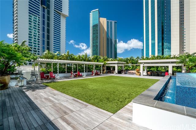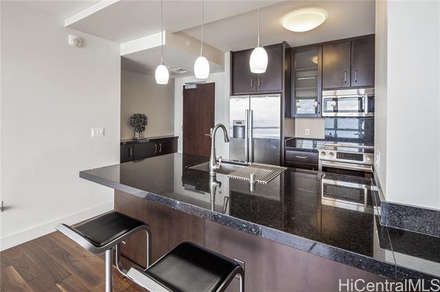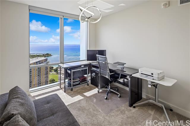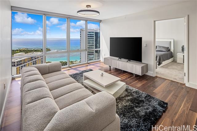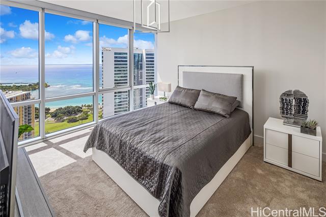 - Experience breathtaking ocean and Diamond Head views from this rare 40th-floor residence. Step into a modern home designed for both comfort and style, with floor-to-ceiling windows that fill the space with natural light and an open-concept layout that highlights the stunning vistas. Residents enjoy world-class amenities including a heated swimming pool, whirlpool spa, private cabanas, BBQ pavilions, a stylish club room, theater, lounge, and a state-of-the-art fitness center. Perfectly located just steps from Ala Moana Beach Park and Ala Moana Shopping Center, and one block from Ward Village, this residence offers the ultimate blend of luxury, convenience, and island living. Brand new flooring and new Refrigerator is a plus!