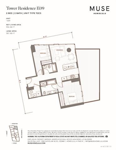 - Muse Honolulu - Ala Moana’s newest luxury development featuring a dynamic collection of thoughtfully designed residences, offering three distinct home types; two-story Townhomes, Urban Lofts, and Tower Residences. Residence 1509 offers an open-concept living/dining area, ideal for both everyday comfort & entertaining. This corner residence is complemented with a finely curated kitchen with top-of-the-line appliances, European cabinetry & countertops, approx. 9' ceilings, and floor-to-ceiling windows that invite natural light throughout the home. This home also offers an expansive 387 SF private lanai, seamlessly extending the living space for true indoor-outdoor living — perfect for relaxing or hosting guests. Enjoy true refined urban living with three levels of resort like amenities with the convenience of abundant shopping, dining, & more! *Photos on this listing are renderings and/or enhanced.* Property tax info is not yet available as Muse Honolulu is a new dev. Future tax assessments will be determined by the C&C of Honolulu upon project completion. CPR number has not yet been determined. CPR number is not a valid CPR number & was used strictly for MLS input purposes