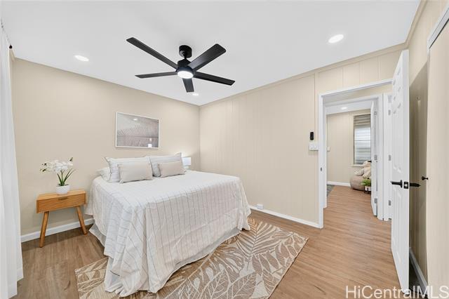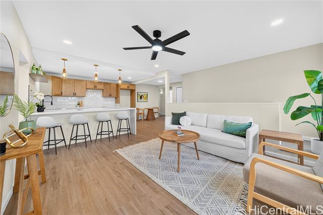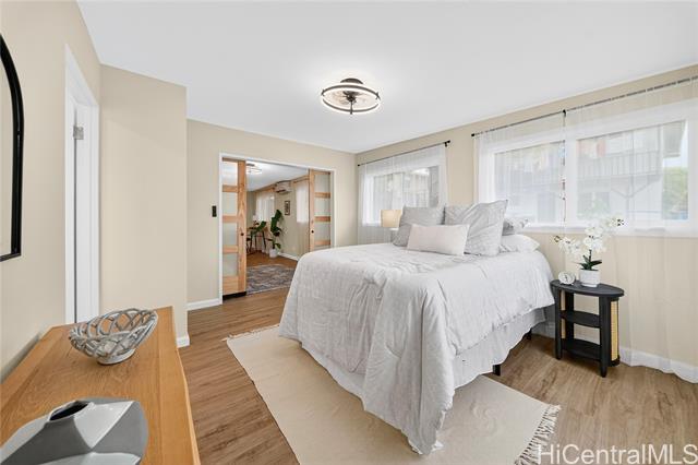 - Fully Renovated Multi-Dwelling Home in Desirable Salt Lake – No HOA! This 4-bedroom, 4-bath home offering flexibility and modern living on a 5,000 sqft lot. Features a 2-car garage, street parking, and a spacious 320 sqft covered lanai with a view of Pearl Harbor. Upstairs includes 3 bedrooms and 2 full baths with a huge primary suite featuring a dual vanity and shower, a remodeled kitchen, and space to add a fourth bedroom. Downstairs offers 1 bedroom, 2 full baths, a wet bar, and room to add a second bedroom—ideal for multi-generational living or rental potential. Renovations include new split A/C throughout, new luxury vinyl plank flooring, fresh paint, new washer, dryer, refrigerator, oven, and microwave, updated kitchens and bathrooms, new water heater, and a new fence. Home also includes 40 owned solar panels with net metering for energy savings. Conveniently located near Aloha Stadium, Ice Palace, Navy Exchange, Target, and the airport.