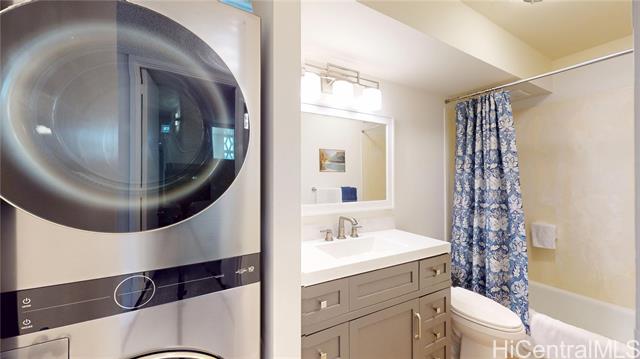 - Experience island living at its best in this beautifully updated condo that exudes pride of ownership. Quietly located toward the end of the hall, this unit offers exceptional privacy and minimal foot traffic. Enjoy refreshing mauka breezes that keep the home cool year-round, or rely on the new 18,000 BTU Air Conditioner unit for added comfort. The modern kitchen features stainless steel appliances, upgraded lighting, and sleek finishes. The spacious living area includes a built-in bar counter, perfect for relaxing or entertaining. Step onto your private lanai to take in sweeping views from Diamond Head sunrises to Ewa sunsets. Dual-pane sliders ensure a peaceful retreat. Additional highlights include a brand-new LG washer and dryer, upgraded vanities with soft-close cabinetry, and access to resort-style amenities including a pool, gym, sauna, putting green, and a tennis/pickleball court. Close to world class beaches, dining, shopping & entertainment, this condo combines modern style, comfort, convenience and privacy. This unit comes with 1 assigned parking and ample guest parking. The Waipuna building is well maintained with an on-site building manager Monday through Saturday.