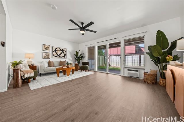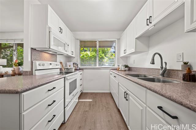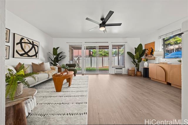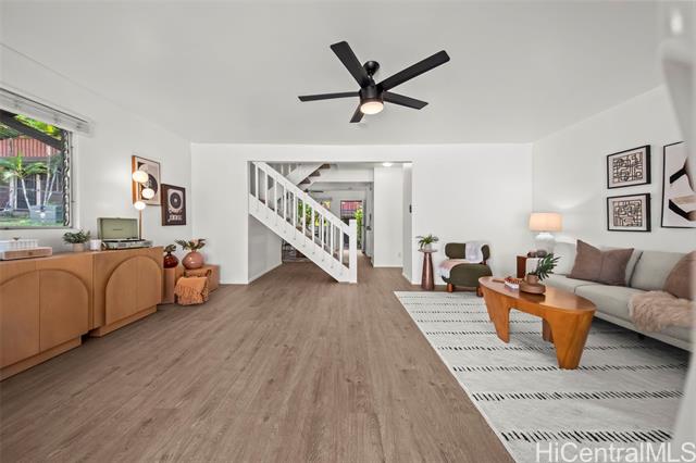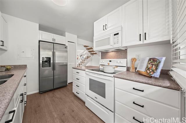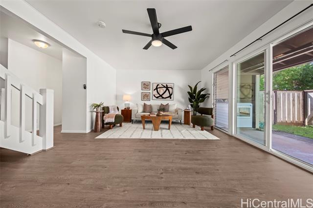 - A cozy, clean, and contemporary oasis awaits you in Nob Hill! Tucked between vibrant greenery, the front door to this 3 bed, 2.5 bath unit opens to a beautifully welcoming dining area, just across from the kitchen. Lovely white cabinetry with black finishings are offset by lush garden views through the surrounding windows, making this a perfect place for any home chef to enjoy cooking and baking to their heart's content. Step through to the living room where sliding doors let in tons of natural light, and imagine the many ways you will be able to utilize the covered lanai just outside (outdoor gym, lounging area, or BBQ space -- you name it!). Walk up stairs to the sleeping quarters, complete with ample closet space and bathrooms with soaking tubs to ensure the utmost in rest and relaxation every night. Two parking stalls make multi-car family living a breeze, and Air Conditioning throughout guarantees comfortability even on hot summer days. Located just a few minutes drive from Mililani Town Center, MTA Rec Centers, Mililani High School, and Mililani Shopping Center - this is a unit not to be missed. Schedule a showing today!