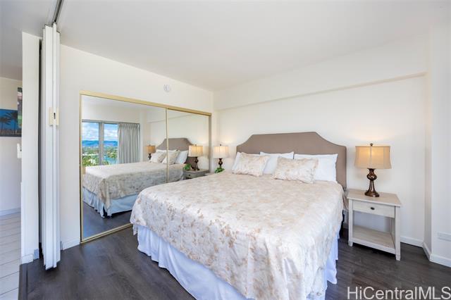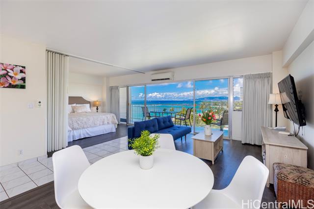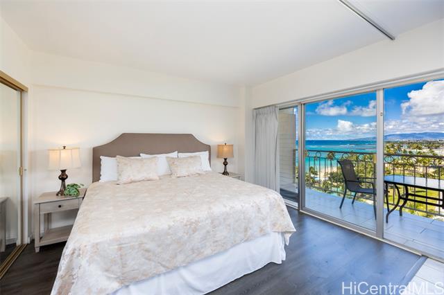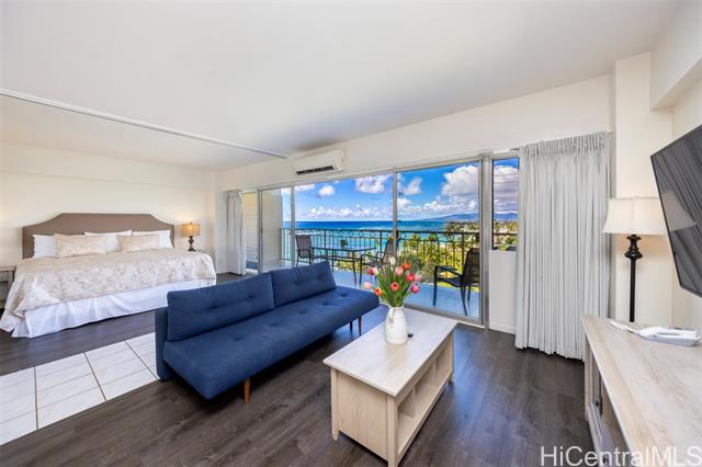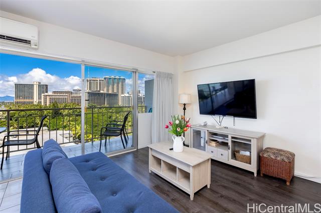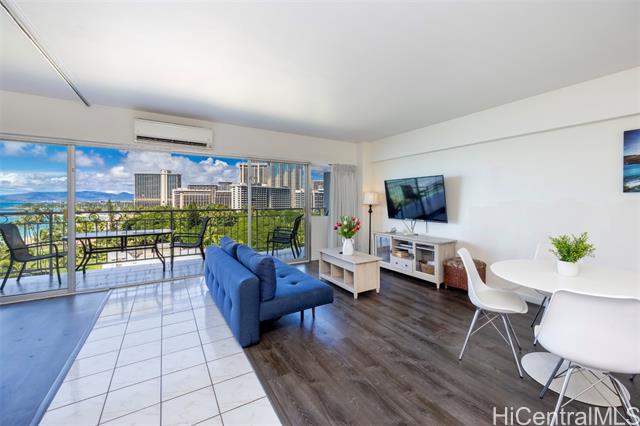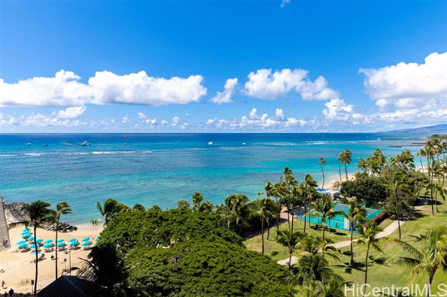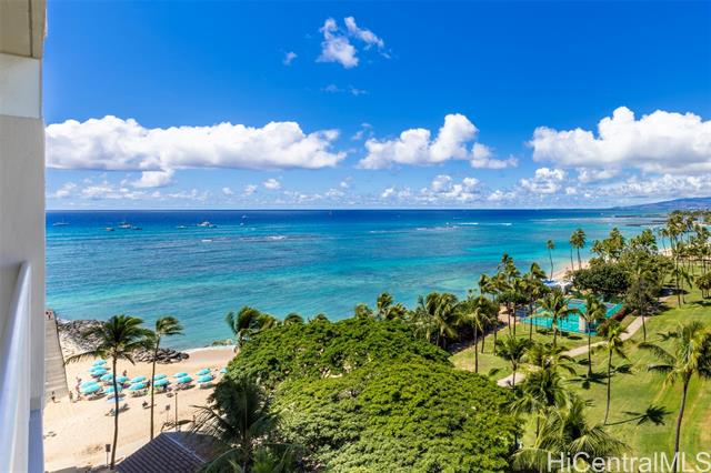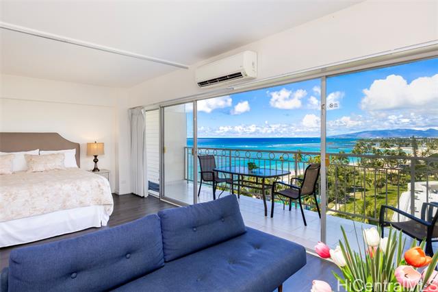 - Welcome home to Waikiki Shore, one of Honolulu's most iconic oceanfront condominium destinations. Situated along Waikiki Beach, this unrivaled location puts sandy beaches, verdant parks, dining, shopping, entertainment and more at your doorstep. This higher-floor 1-bedroom, 1-bath, 706 sq.ft. residence with a spacious 124 sq.ft. lanai enjoys dynamic 180-degree panoramic views stretching from the Pacific Ocean, along Waikiki Beach and DeRussy Park, to Waikiki and the majestic Koolau Mountains. The interior has been updated with a split A/C system, modernized kitchen and bathroom spaces, upgraded flooring, lighting, and more. Property qualifies for daily short-term rental, great for investment, second home, or primary residence. Discover unparalleled beachfront island living at Waikiki Shore. Listing includes enhanced, zoomed-in photos.
