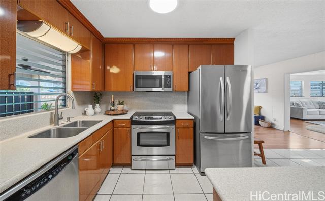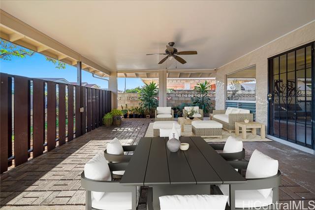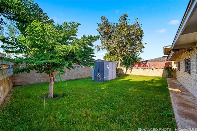 - Discover Waipahu’s Finest! Experience the perfect blend of comfort, style, and functionality in this beautiful 4 bedroom, 2 bath home. The spacious great room offers an open-concept layout, ideal for entertaining or relaxing.The kitchen is equipped with durable HI-MACS solid-surface countertops, combining quality and modern appeal. Fresh interior and exterior paint give the home a clean, bright, and inviting feel. One bedroom has been thoughtfully transformed into a custom walk-in closet, adding a touch of luxury and organization. Step outside to the expansive 378 sq. ft. covered porch, perfect for gatherings or simply enjoying the outdoors. Beyond the porch, a spacious leveled backyard provides endless possibilities for play, gardening, or future expansion. Located in the desirable Waipahu Estates neighborhood, you’ll enjoy convenient access to Waikele Premium Outlets, local dining, parks, and schools. Easy access to the H-1 freeway and nearby bus routes makes commuting a breeze. With no association or maintenance fees, this move-in ready home offers true ownership freedom. Discover the best of Waipahu living, comfort, space, and convenience all in one.