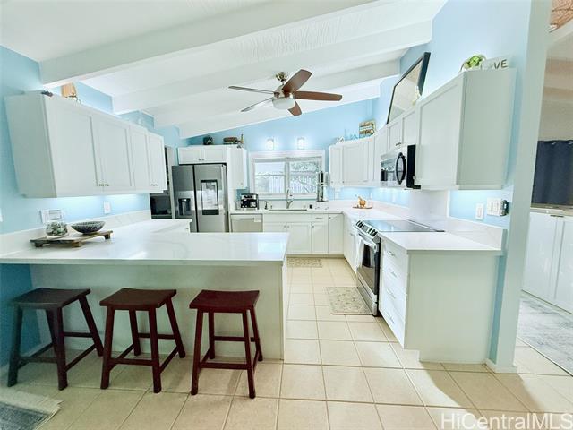 - Welcome to your private oasis in Hawaii Kai! Tucked at the end of a quiet cul-de-sac, this 4-bedroom, 2-bath home sits on a large lot and perfectly blends comfort, style, and convenience. Inside, enjoy remodeled living spaces, an updated kitchen, modern bathrooms, and a spacious living room with custom built-ins. Stay cool with five energy-efficient mini-split systems (newest installed September 2025). The beautifully landscaped yard features a sparkling pool, tranquil water feature, and lush greenery—ideal for entertaining or relaxing. Exterior paint will be completed or credited by closing. Just a 6-minute walk to Kamiloiki Elementary (IB school) and a 15-minute walk to Kaiser High (IB program). Close to parks, and only 5 minutes to Koko Marina and Hawaii Kai Town Center for shopping, dining, and more. This home offers privacy, lifestyle, and convenience in one of East Honolulu’s most desirable communities. All comments, data is provided by seller or seller's representatives. Buyer to confirm all & hold all parties harmless from any discrepancy data in the mls and advertising. Limited Service–Data Entry Addendum signed by seller/s must be signed by buyer/s with Purchase Contract.
