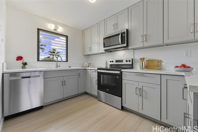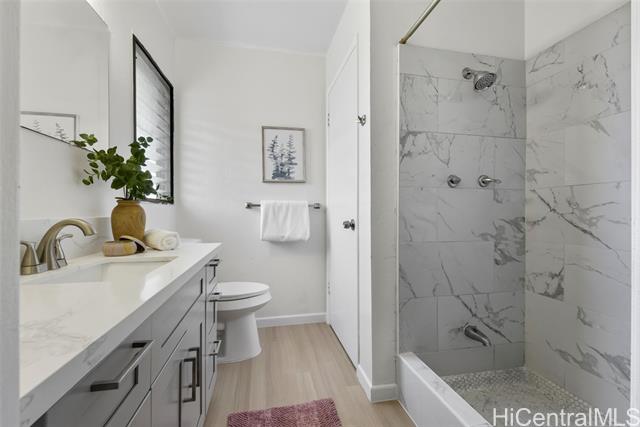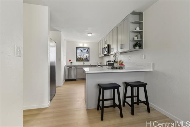 - Newly renovated with quartz countertops, solid wood cabinets, shower, toilets, sinks, vinyl flooring, fresh paint, all new light fixtures, and brand new appliances. Located in desirable Tropicana Village in Aiea across from Pearl Country Club and minutes from Pearlridge Mall. Perfect blend of comfort, style, and convenience in this 3-bedroom, 2.5-baths townhome that offers separate living rooms and dining rooms, 2 storages, oversized 2-car garage and additional 2-car driveway parking. Spacious lanai perfect for enjoying a morning coffee or evening relaxation. Prime location and offers easy access to mall, dining, parks, and schools. Commuters will appreciate the proximity to major highways, making travel to Honolulu or west side a breeze. All comments, data is provided by seller or seller's representatives. Buyer to confirm all & hold all parties harmless from any discrepancy data in the mls and advertising. Limited Service–Data Entry Addendum signed by seller/s must be signed by buyer/s with Purchase Contract.
