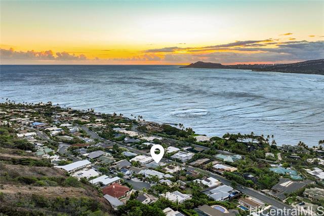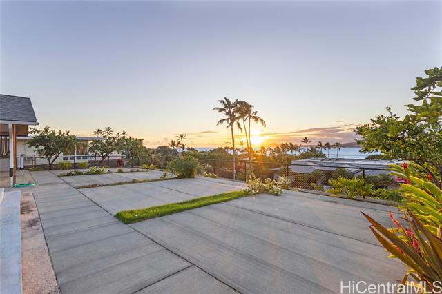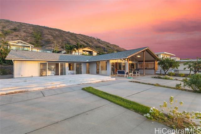 - Luxurious Breathtaking Ocean and Sunset Views! Elevated on one of Oahu’s most prestigious neighborhoods, this mid century modern single-level, four-bedroom plus den, two-bath residence captures the essence of relaxed island luxury. Framed by sweeping ocean vistas and radiant evening sunsets, the home offers a seamless blend of comfort and elegance. Expansive picture windows invite the views inward, creating a light-filled sanctuary where the ocean feels like an extension of your living space. Step onto the spacious front lanai, perfect for sunset gatherings, morning coffee, or simply savoring the stillness of golden afternoons and timeless Hawaiian charm. The generous front grounds provide both convenience and opportunity, with ample room to expand the home or lanai, allowing your vision to unfold with ease. The existing pool, currently covered, remains ready to be reimagined as the centerpiece of your private outdoor oasis. Revel in the simple elegance of this home with a lifestyle defined by serenity, sophistication, and the natural beauty of Hawaii’s coastal living.