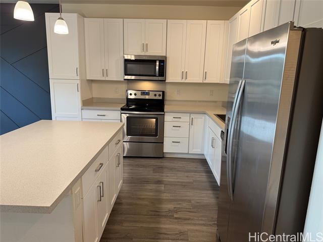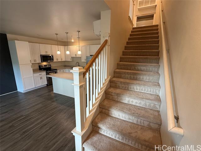 - Discover this sharp, move-in-ready 3-bed, 2.5-bath split-level townhome in the highly sought-after 'Ilima at Ho'opili community on West Oahu. This is your chance to acquire a modern home at an unparalleled value. The interior boasts a contemporary, open-concept design. The kitchen features white shaker cabinets, sleek quartz/cool sands countertops, and a full suite of stainless-steel appliances (range/oven, refrigerator, dishwasher, microwave hood). Comfortable year-round climate control with split AC systems and ceiling fans. Durable vinyl plank flooring covers the main level, with carpeting upstairs. **Features: attached 239 sq ft garage, driveway, and a fenced yard. Primary suite includes covered lanai, en suite bath, and walk-in closet. Community amenities: pool, BBQ, playground, dog park, and jogging paths. Excellent location near rail, H-1, Ka Makana Ali'i, Kapolei shops and dining and UH West Oahu. **URGENT SHORT SALE NOTICE: All offers must be clean, with strong financing pre-approval, and are subject to final written approval of the third-party lienholder (lender). Anticipate extended closing timelines and a strict AS IS purchase condition. Make Ho'opili your new home!