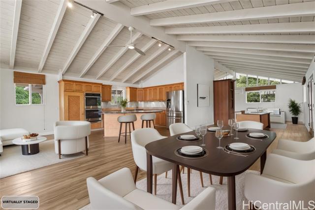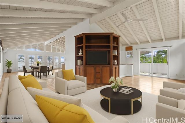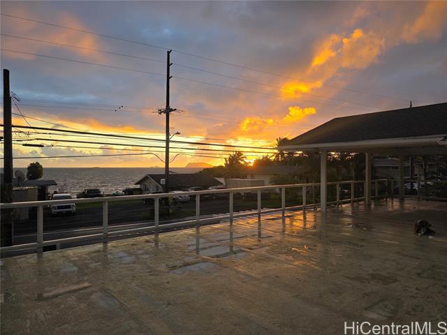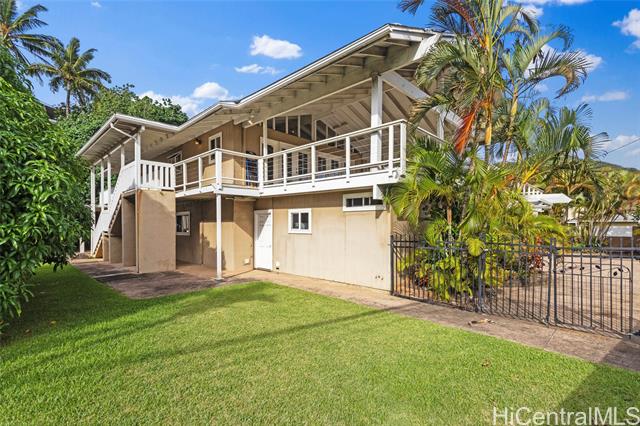 - Imagine having your morning coffee looking out over the ocean on your expansive covered lanai or catching some rays on your equally expansive open lanai. Cool ocean breezes all day long. One of the largest lots and homes on Kam Hwy in Kahaluu. Spacious interior and exterior, Great and large lanai with views of Kaneohe bay, offshore islands and distant surf breaks. Yard completely fenced and gated. Large portion of yard stamped concrete. 2 car garage with enough space for an additional 2 vehicles in driveway. Split air conditioning on 2nd floor. Ceiling fans for all first floor bedrooms. 1st floor block and stucco. Layout allows flexibility for multigenerational living, guest quarters or additional rental income. Convenient location, short drives to MCB, Windward Mall, Likelike, H3. Listing agent is owner. For sale as is. 1031 exchange