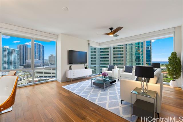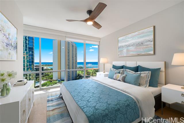 - Enjoy the coastal lifestyle of Waihonua - 3 bedroom, 2 bathroom ocean view, corner unit in the prestigious Ala Moana, Ward Village area in the heart of Honolulu. The unit is beautifully upgraded with European designer countertops, new appliances, designer lighting fixtures, fully built-in closet systems, seamless blackout blinds and hardwood flooring! World class amenities include: chef's kitchen in club room, fitness center, yoga and private workout studio, spa, pool, theater, BBQ cabanas & guest suites! All in a perfect location for an active lifestyle, steps away from Ala Moana beach, Whole Foods, shopping & restaurants! 3-bedrooms are rarely available at this great value!