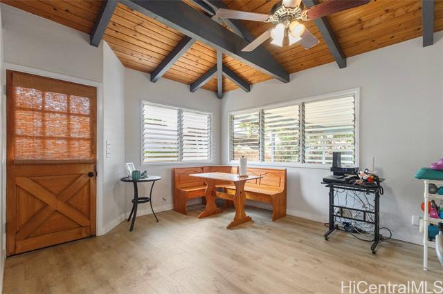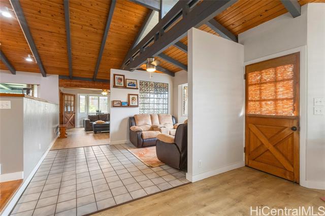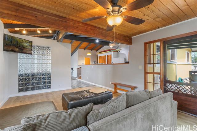 - Discover this exceptional four-bedroom, three bathroom home on a quiet dead-end street in Maili. Recently refurbished, this 1,832 sqft residence features durable construction and an open concept living space. Exposed beam ceilings create a sense of spaciousness and architectural charm. The primary bedroom offers a private retreat, while three additional bedrooms provide flexibility for family and guests. There's also a dedicated office area for remote work or creative pursuits. The back patio is perfect for morning coffee or sunset relaxation, with gentle trade winds keeping things comfortable year-round. You're minutes from Maili Point Beach Park where ocean adventures await. Move in and enjoy island living right away! Quality construction, recent renovations and a welcoming atmosphere are waiting. This is more than a house; It is a place where memories are made.