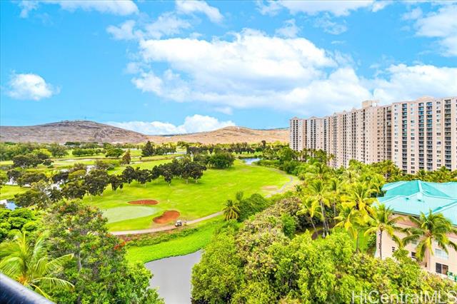- This bright and breezy corner unit features an open floorplan with relaxing trade winds, plus panoramic golf and mountain views. Large lanai! In-unit washer and dryer. Remodeled kitchen, new Dishwasher. Unit comes with two parking stalls. Building equipped with fire sprinklers and is pet friendly. Ideally situated near freeway access, bus lines, shopping, dining, downtown, airport, schools, parks, and more. Resort-style amenities include pool, sauna, BBQ areas, meeting room, and fitness center. 24-hour security, resident manager. Plenty of guest parking available!