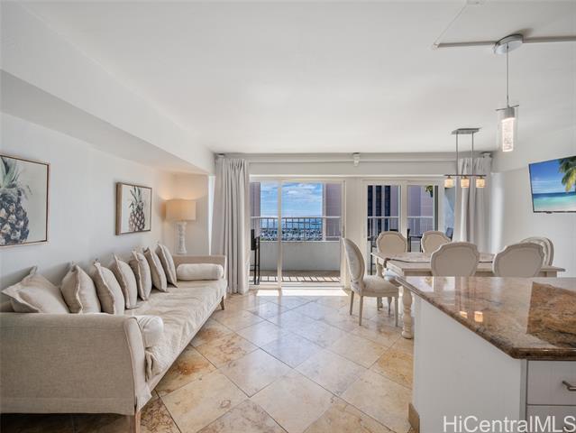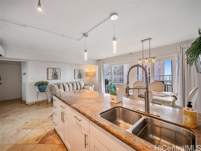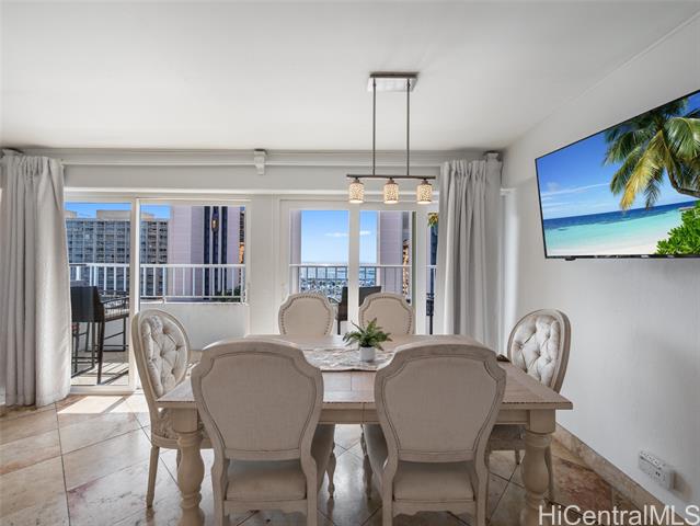 - Welcome to a rare opportunity in Waikiki! This upgraded, versatile corner unit offers unmatched flexibility, modern upgrades, and outstanding rental income potential. With two separate exterior entrances, this property can be configured as a spacious 3-bedroom/3-bath or split into a 2-bedroom/2 bathroom, plus studio/1 bathroom. Live in one and rent the other, or rent both separately or rent the entire unit as one! The designer kitchen features granite countertops, stylish backsplashes, and top of the line appliances. The open floor plan and 3 separate lanais, allowing for good cross breeze, showcasing stunning views of the ocean, mountains, city and Ala Wai Canal. Located at the gateway to Waikiki and Ala Moana, you're just a short stroll from world class beaches, surf spots, yacht club, Ala Moana Shopping Center, restaurants, nightlife, convention center and so much more. This pet-friendly, VA-approved boutique building also includes split AC and a covered, lobby-level parking stall. Whether you're an investor or an owner-occupant seeking flexibility, this is truly a must-see property in one of Oahu’s most sought-after locations!