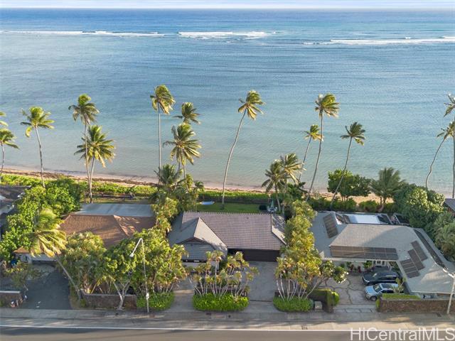 - RARE, VINTAGE, MINT, BEACHFRONT OSSIPOFF GEM! Experience timeless Hawaii luxury in this exquisite 3-bedroom, 2.5-bathroom single-level home, meticulously crafted by renowned architect Vladimir Ossipoff. Nestled on a pristine, sandy, slight beachfront bluff, this architectural gem harmoniously blends indoor and outdoor living, with breathtaking ocean views+uninterrupted tranquility. Step inside this spacious, airy open floor plan, highlighted by classic mid-century design elements and artistry. The gourmet kitchen, equipped with top-line appliances, flows into the dining+living areas, perfect for entertaining guests or enjoying family evenings. Relax+unwind in the new hot tub, watching the stars above+the cool tradewinds, or stay cool inside, with central air conditioning. The enclosed garage and subtle lighting offer convenience+security. Embrace a lifestyle of elegance and a quiet, timeless luxury this special home beholds, while just minutes to world-class dining, shopping, schools, hospitals, and the best of Honolulu, or Waimanalo, Kailua, Northshore, & West Oahu! Every detail of this dream home embodies thoughtful ambiance, privacy, and the expansive beauty of Ossipoff.