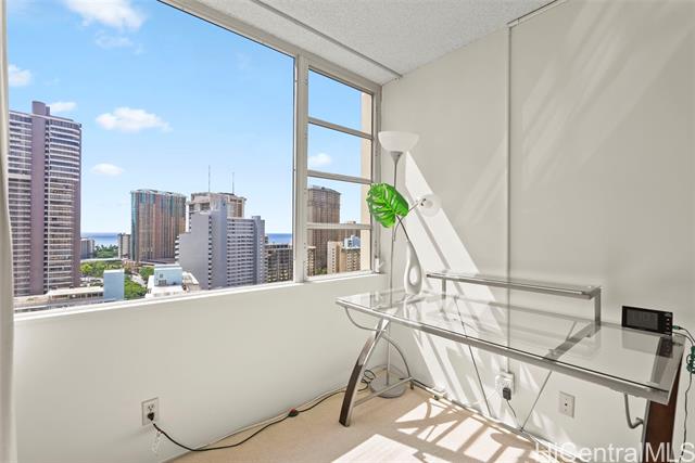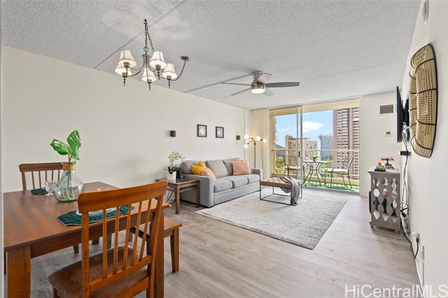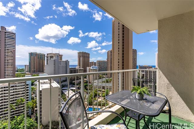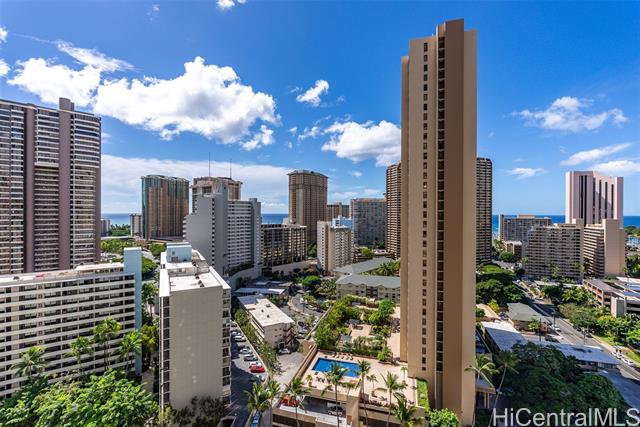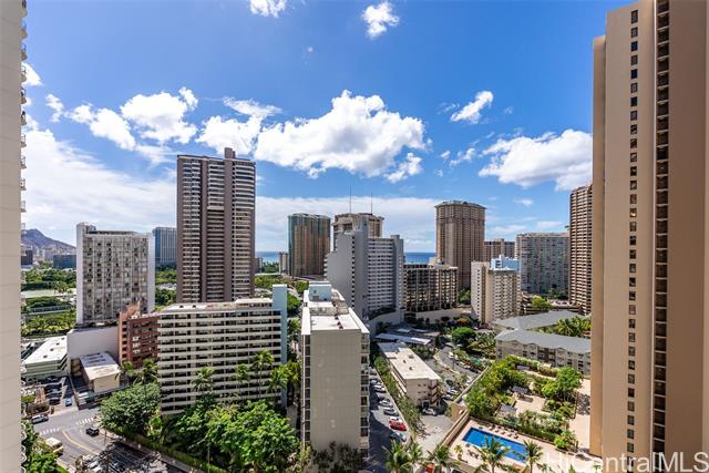 - Beautiful 1-bedroom, 1-bath, 1-parking unit in a highly desired building w/stunning OCEAN mountain, and DIAMOND HEAD views. This EAST-FACING unit is on the COOLER, preferred side of the building, where you can enjoy gentle morning sunlight on your LARGE lanai. One of the few buildings in Waikiki with ROOFTOP AMENITIES —including a pool, fitness center, BBQ area, recreation space, yoga studio, and 360° island views. Don’t miss this incredible opportunity to LIVE, LOVE, Waikiki!