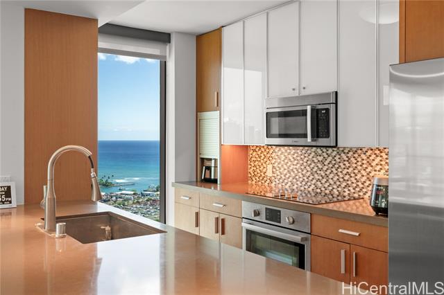 - Experience modern island living in this high-floor corner end unit showcasing expansive views the Pacific Ocean. Nestled in the heart of vibrant Kakaako, this rarely available 09-stack residence offers the perfect blend of comfort and convenience. Enjoy the cool side of the building while still capturing stunning ocean vistas and refreshing island breezes. Step outside to explore the lively SALT at Kakaako dining and shopping scene, with Ala Moana Shopping Center just minutes away. H-Mart and Downtown Honolulu are also within easy reach, making this the ideal urban retreat in one of Honolulu’s most dynamic neighborhoods.
