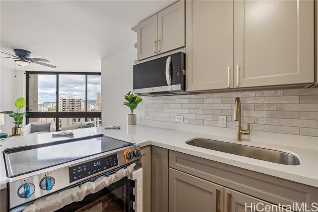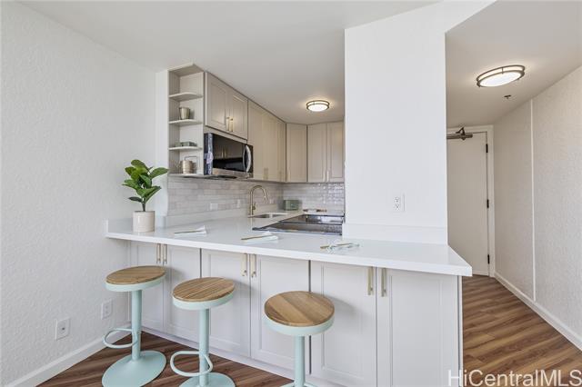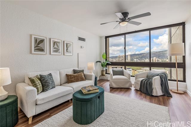 - Welcome to you freshly renovated sanctuary at Liliuokalani Gardens, 2104 (Queen Tower)! 100% Hurricane coverage in place with no special assessment! Experience tranquil island living in this tastefully reimagines, never-lived-in oasis. Thoughtfully completed in October 2025, #2104 blends modern comfort with timeless serenity finished with all new appliances. This home welcomes the sunsets in soft pastels, majestic mountain views, & sparkling cit lights. This lush oasis once belonged to Queen Liliuokalani herself. Designed with privacy and safety in mind, this rare unit includes an in-home fire sprinkler system. Located just blocks from Waikiki Beach, The Zoo, Ala Wai Golf Course, Jefferson Elementary, Kapiolani Park, Kaimana Beach, and premier dining, this home is your serene retreat in a vibrant city setting. Resort style amenities include a koi pond, the largest residential pool in Waikiki, spa, BBQ pavilions, pickleball/tennis courts, EV charging stations, & 24/7 security-all surround by lush tropical gardens. HOA fee includes internet, cable, hot water, water and sewer. Assigned parking $300/year. 90-day minimum rental.